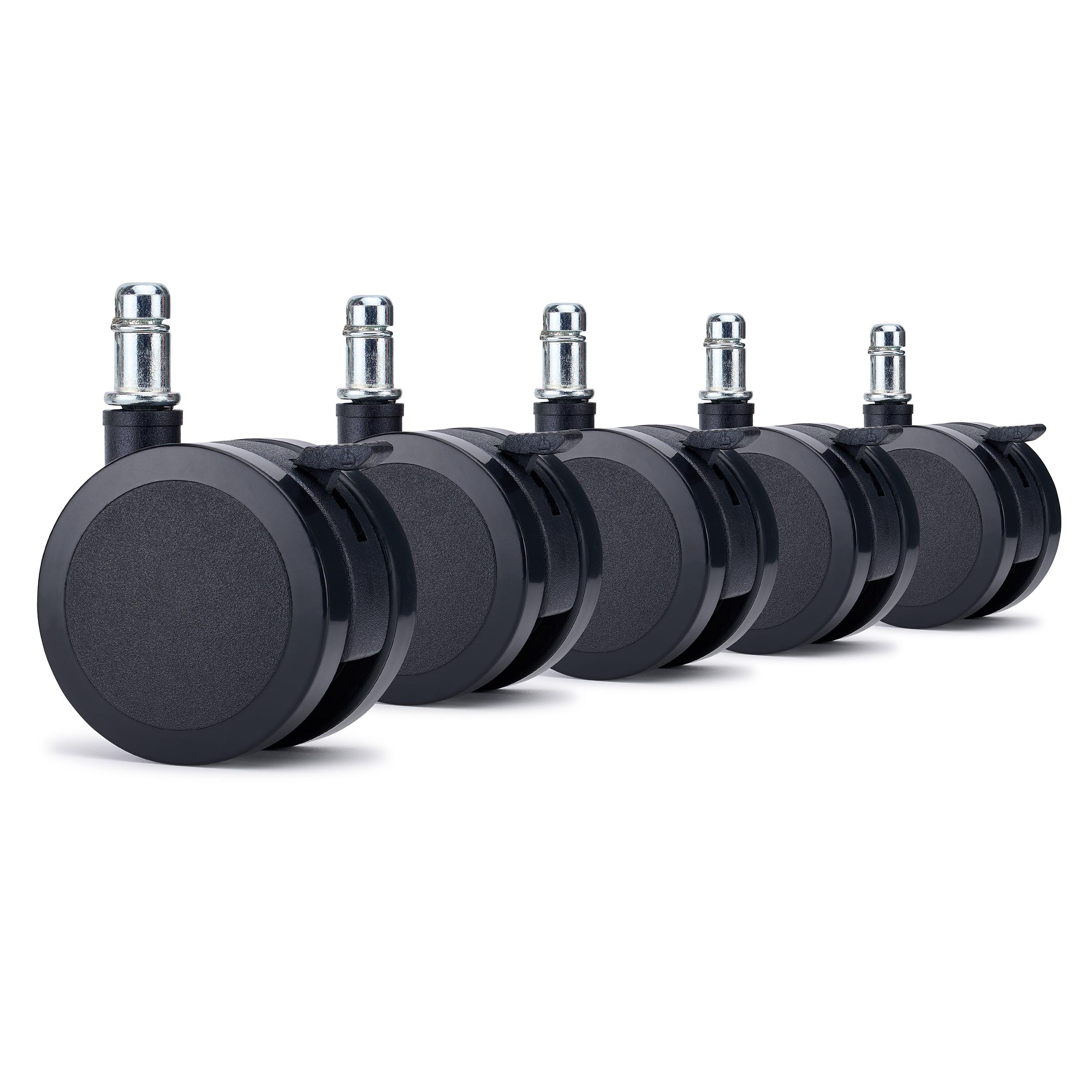 5 szt. Kółka z Hamulcem BRAKE do Podłóg Twardych 11 mm / 50 mm, Uniwersalne Kółka do Foteli Biurowych, Czarne