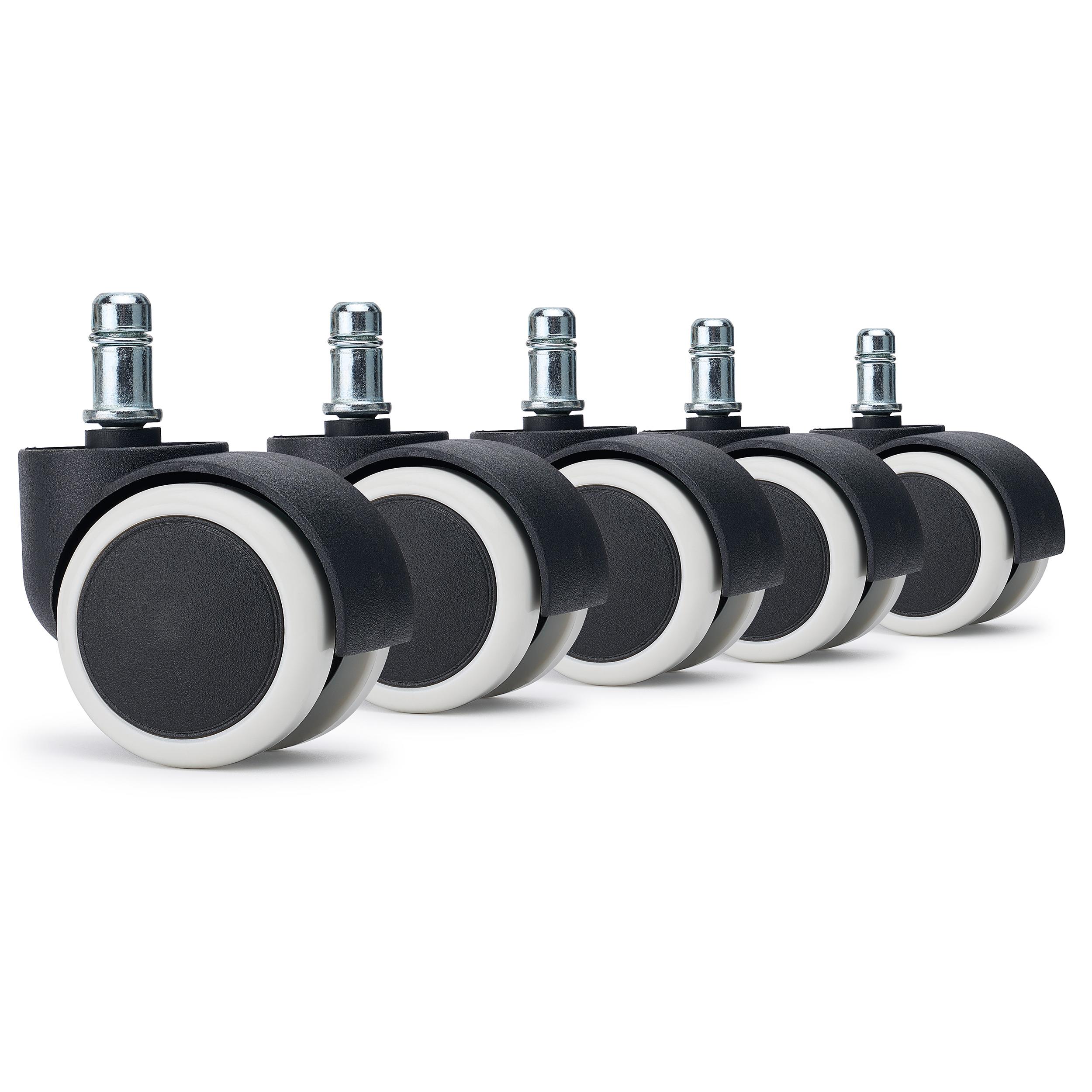 5 szt. Zestaw Kółek Miękkich VELO do Foteli i Krzeseł Biurowych 11 mm / 50 mm, Nie Rysują Parkietów, Białe