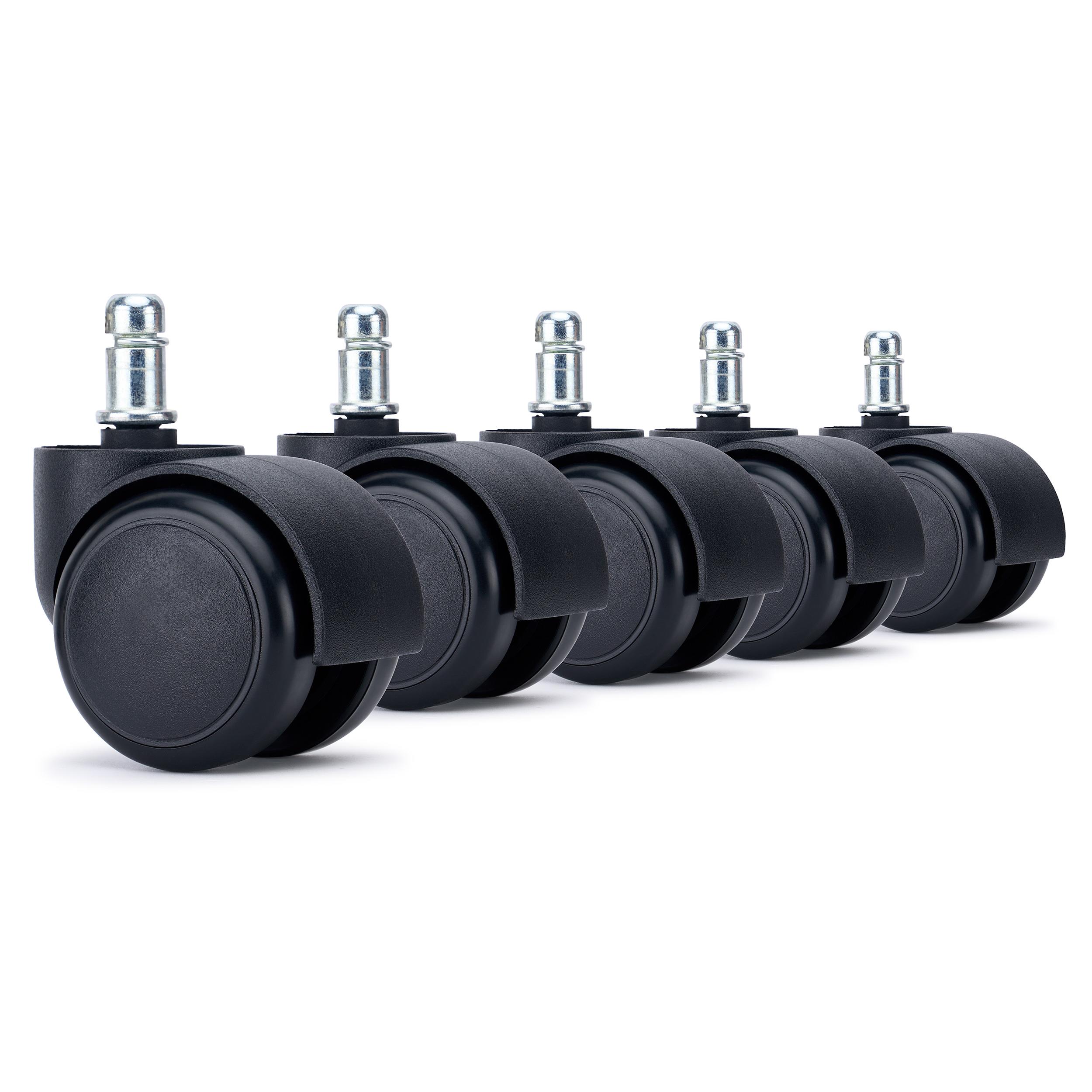 5 szt. Zestaw Kółek Miękkich VELO do Foteli i Krzeseł Biurowych 11 mm / 50 mm, Nie Rysują Parkietów, Czarne