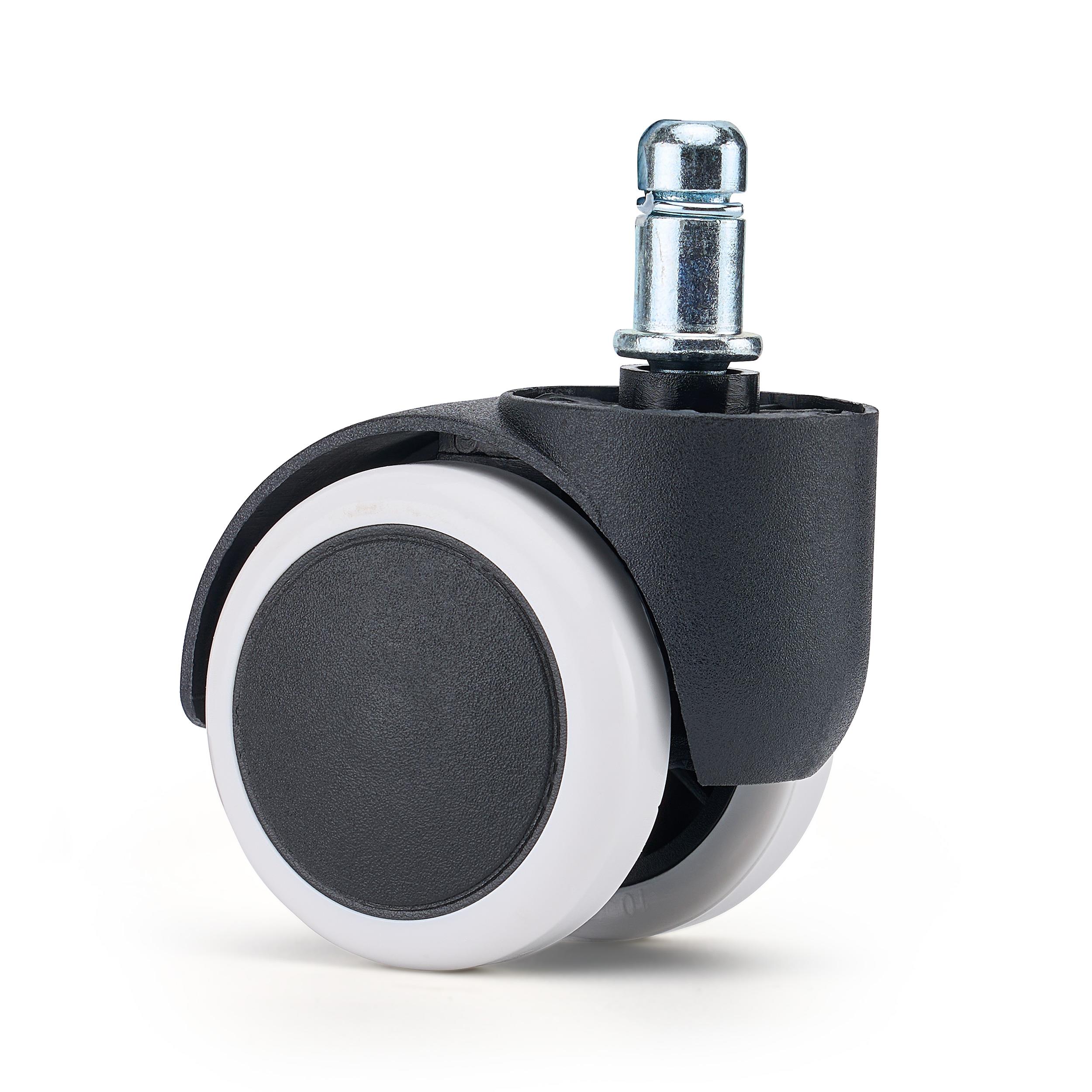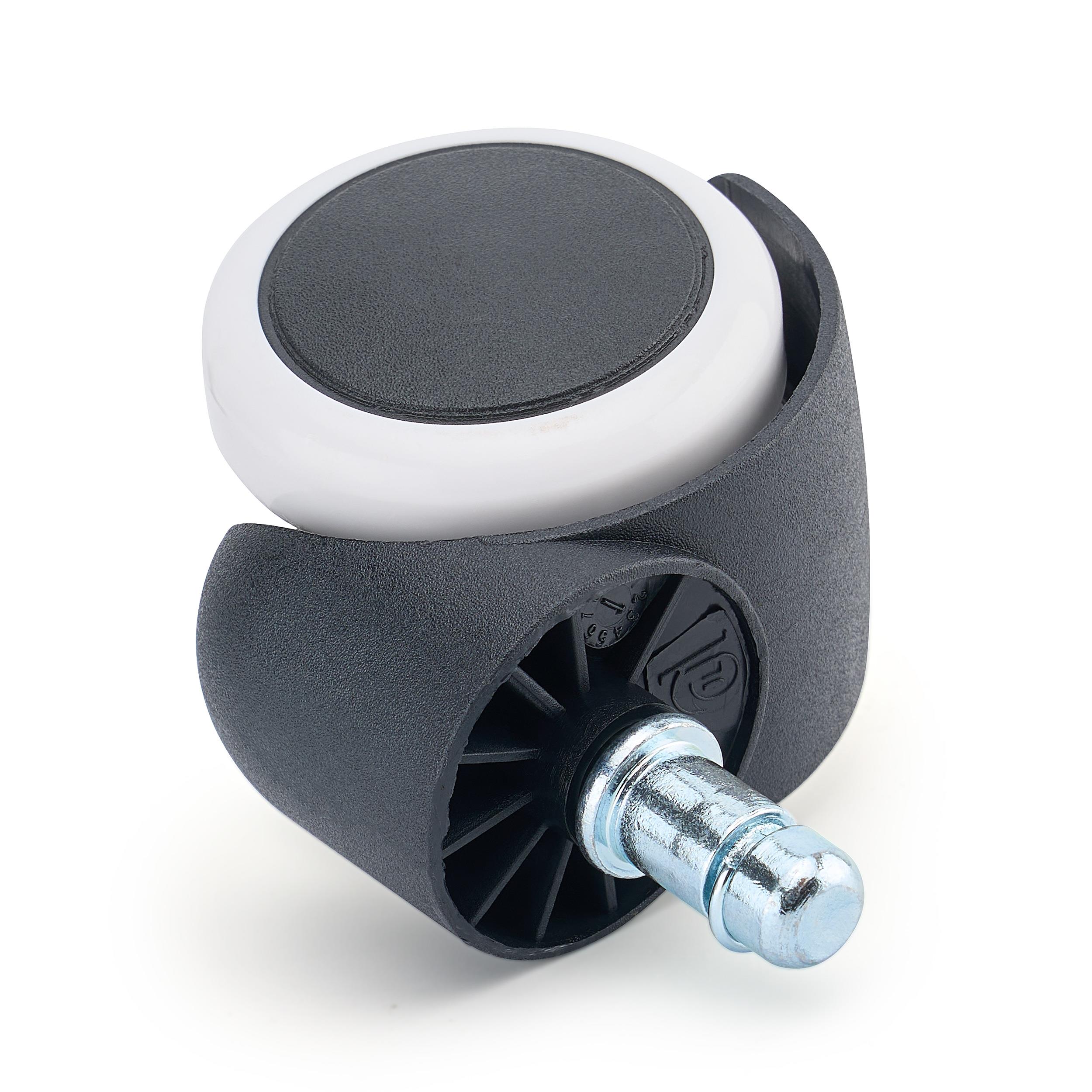 Stabilna konstrukcja oraz precyzyjny mechanizm obrotowy gwarantują komfort użytkowania, płynny ruch oraz ograniczenie hałasu podczas przesuwania. Model wyróżnia się klasycznym, uniwersalnym wzornictwem, dzięki czemu kółka pasują do większości krzeseł biurowych niezależnie od ich stylu czy koloru.