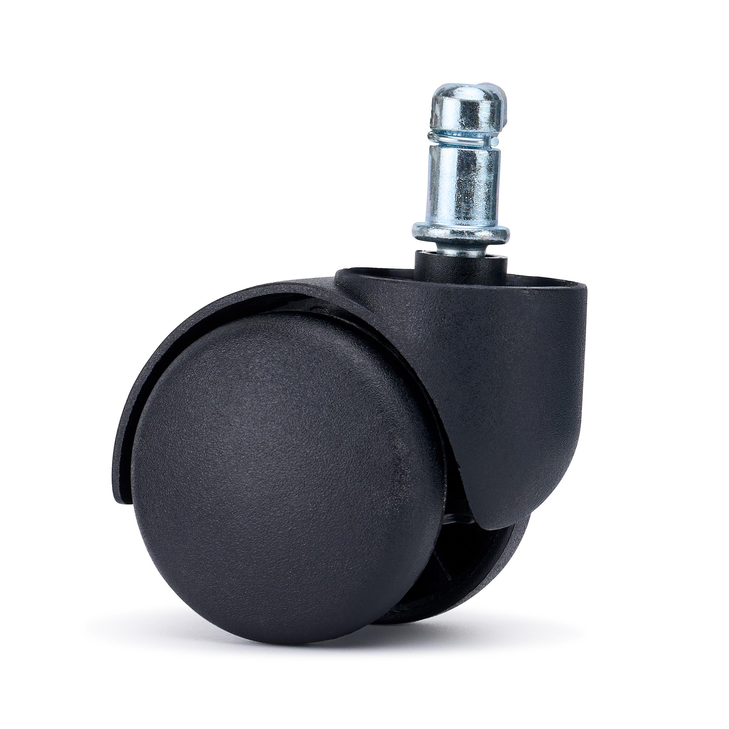 Stabilna konstrukcja oraz precyzyjny mechanizm obrotowy gwarantują komfort użytkowania, płynny ruch oraz ograniczenie hałasu podczas przesuwania. Model wyróżnia się klasycznym, uniwersalnym wzornictwem, dzięki czemu kółka pasują do większości krzeseł biurowych niezależnie od ich stylu czy koloru.