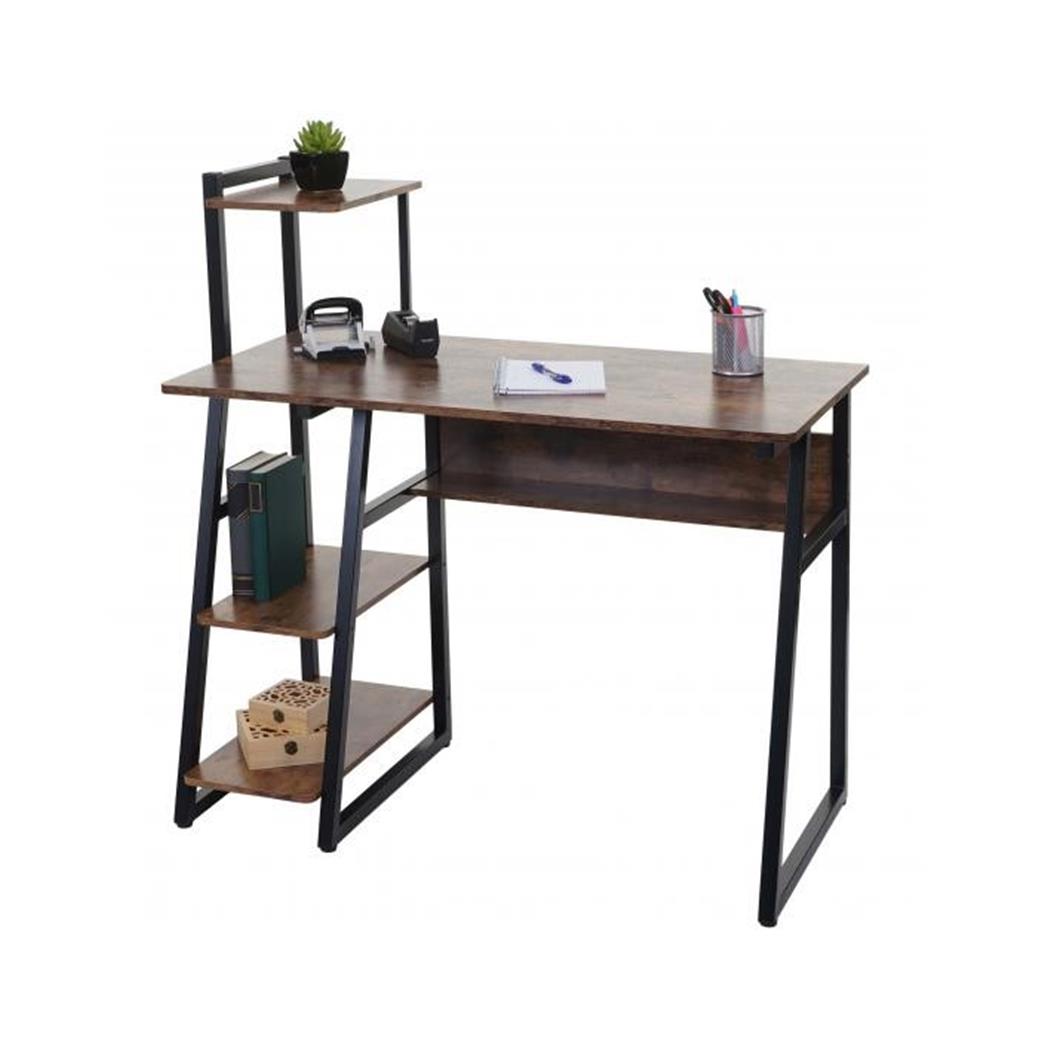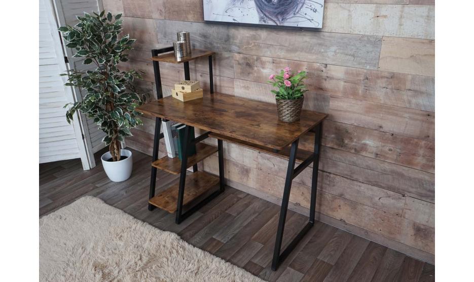 Biurko Komputerowe HELIX, Metalowy Stelaż, Praktyczne Półki, Czarne nogi, Blat kolor Ciemny Brąz