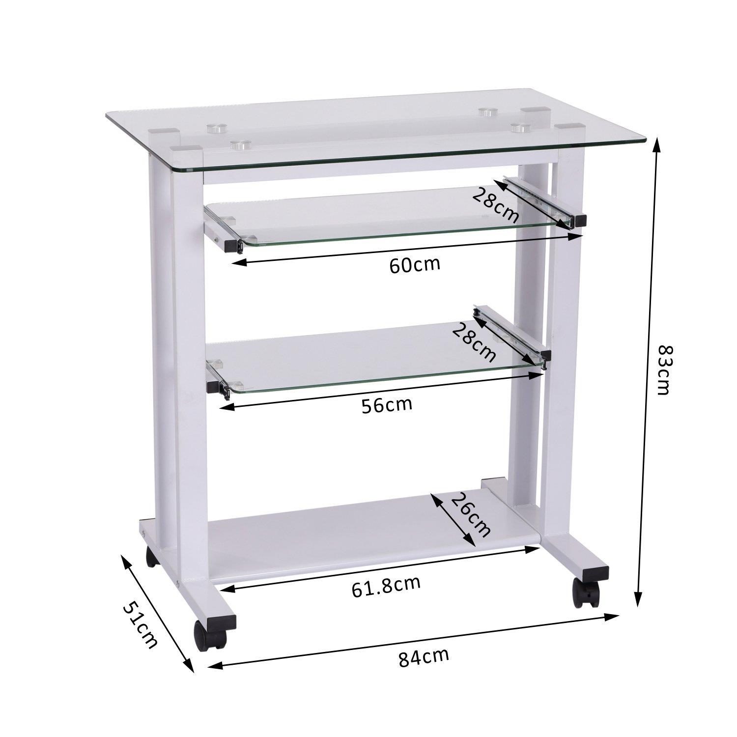 Biurko komputerowe TOKIN, Kompaktowe, 80x51x83 cm, Szkło i Metal, kolor Biały