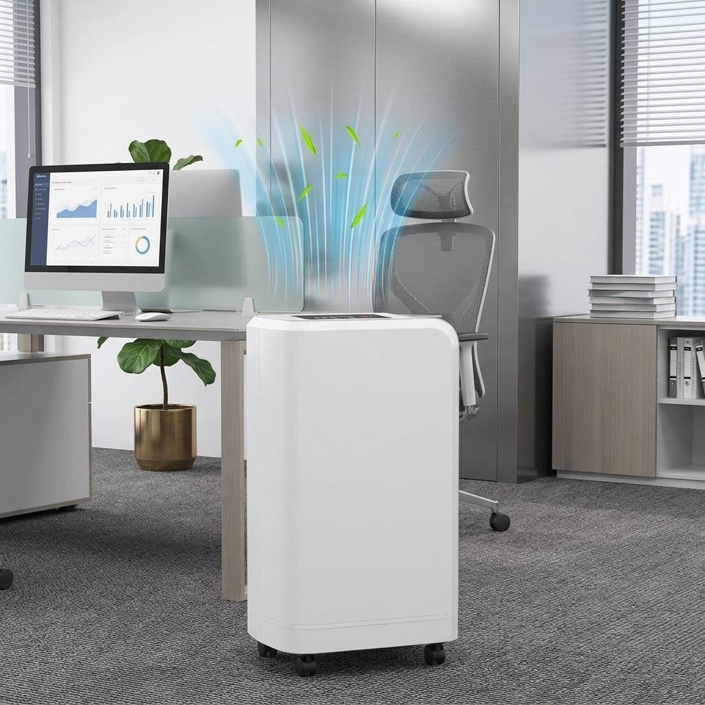 Urządzenie oferuje 2 prędkości wentylatora oraz możliwość regulacji poziomu wilgotności, co pozwala dopasować jego działanie do indywidualnych potrzeb. Intuicyjny panel dotykowy z wyświetlaczem LED ułatwia obsługę i szybkie ustawienie parametrów pracy.