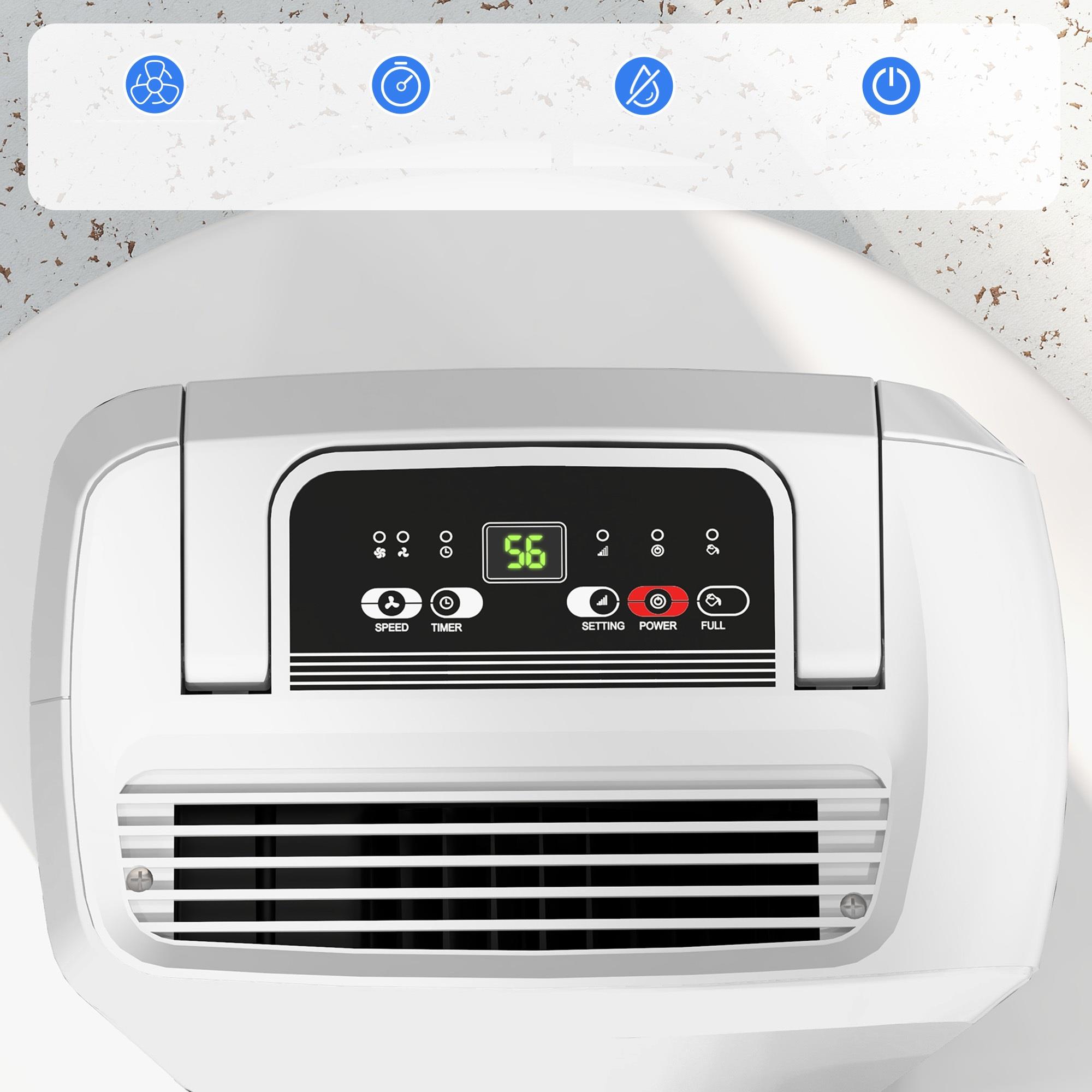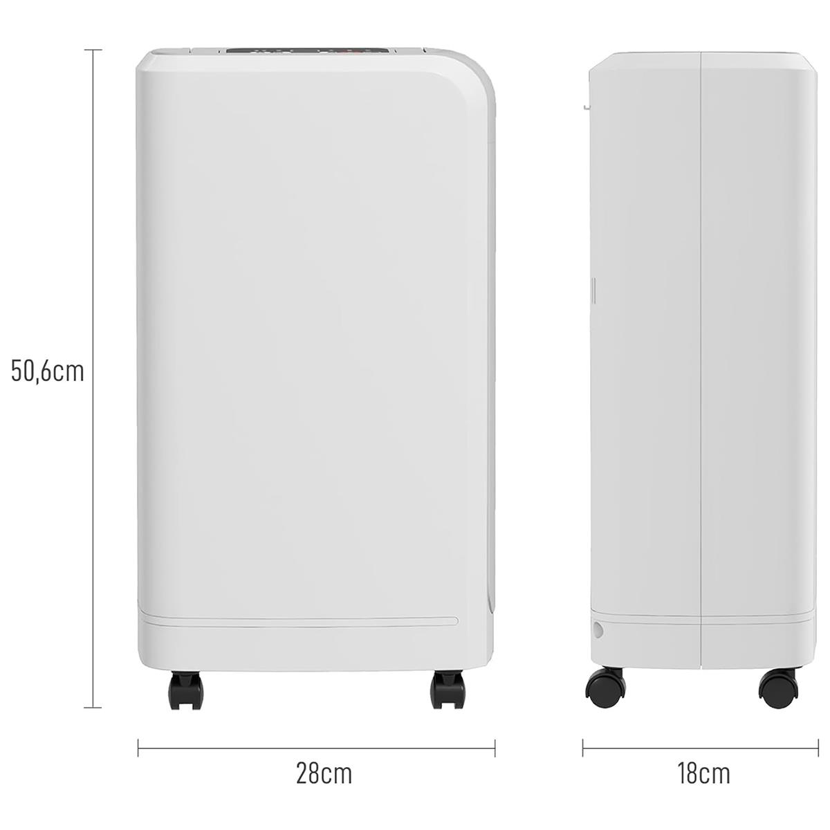 Osuszacz wyposażony jest w timer 24-godzinny oraz funkcję automatycznego wyłączenia, co zwiększa bezpieczeństwo i wygodę użytkowania. Dodatkowy wskaźnik informuje o zapełnieniu zbiornika na wodę, zapobiegając przepełnieniu.