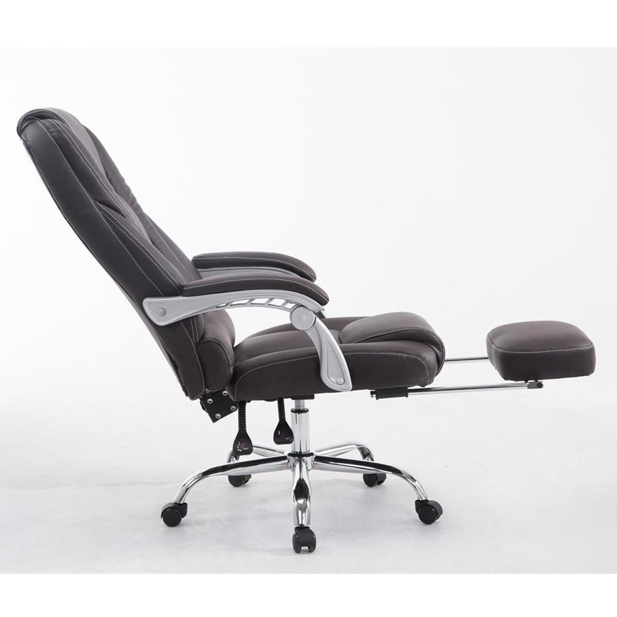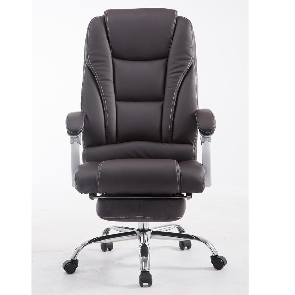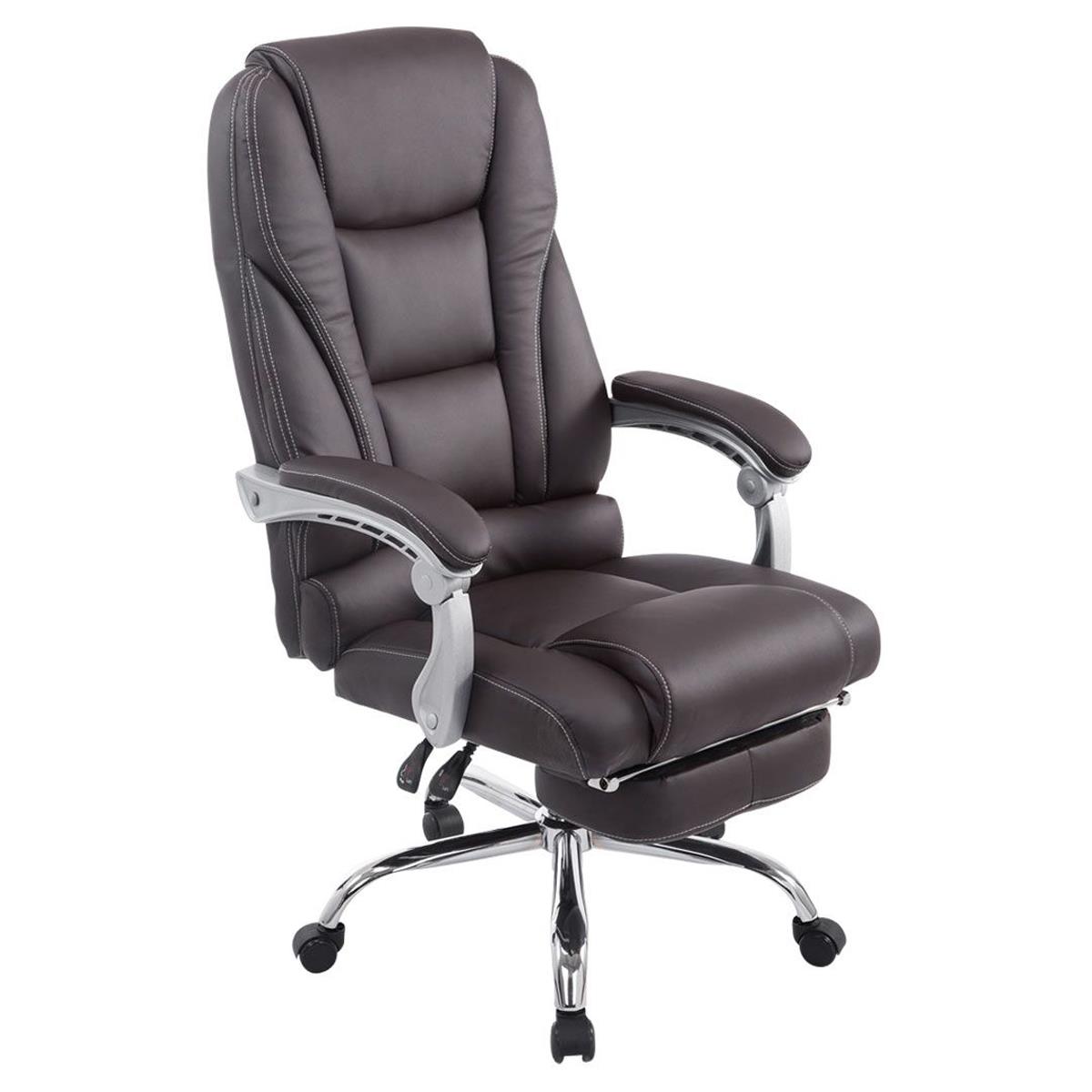 DEMO# Fotel Biurowy COMODITY, Grube Wypełnienie, Wysuwany Podnóżek, Skórzany, Brązowy
