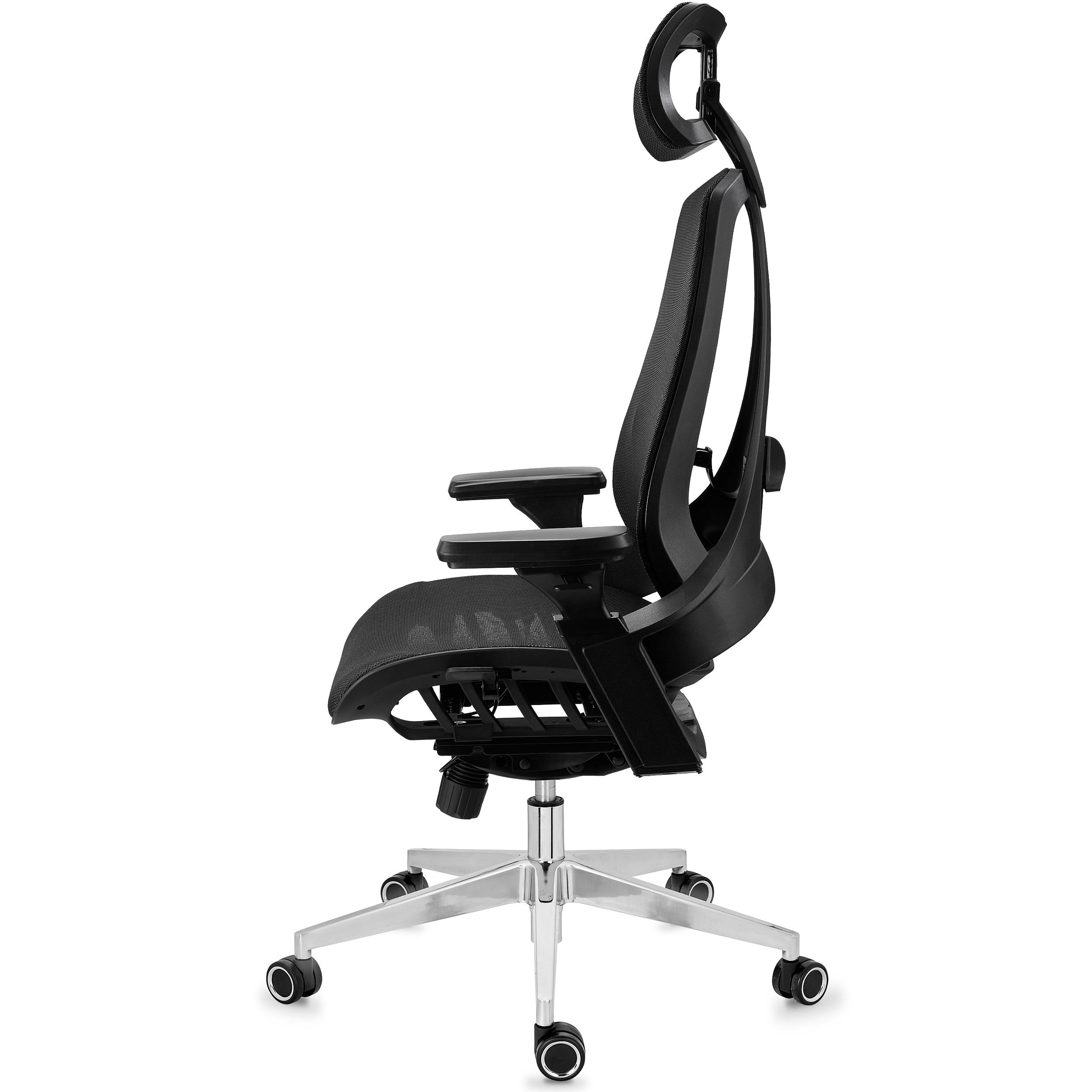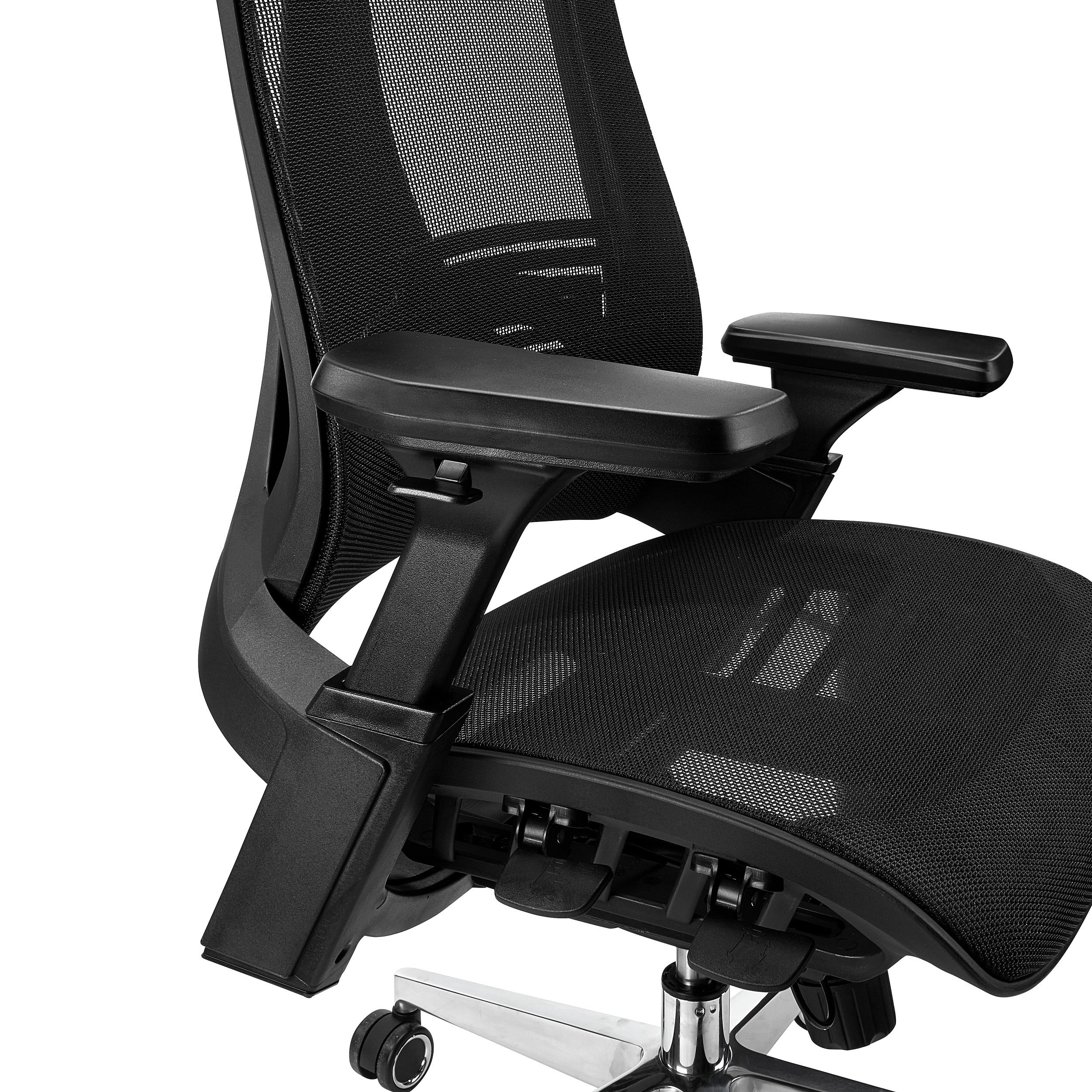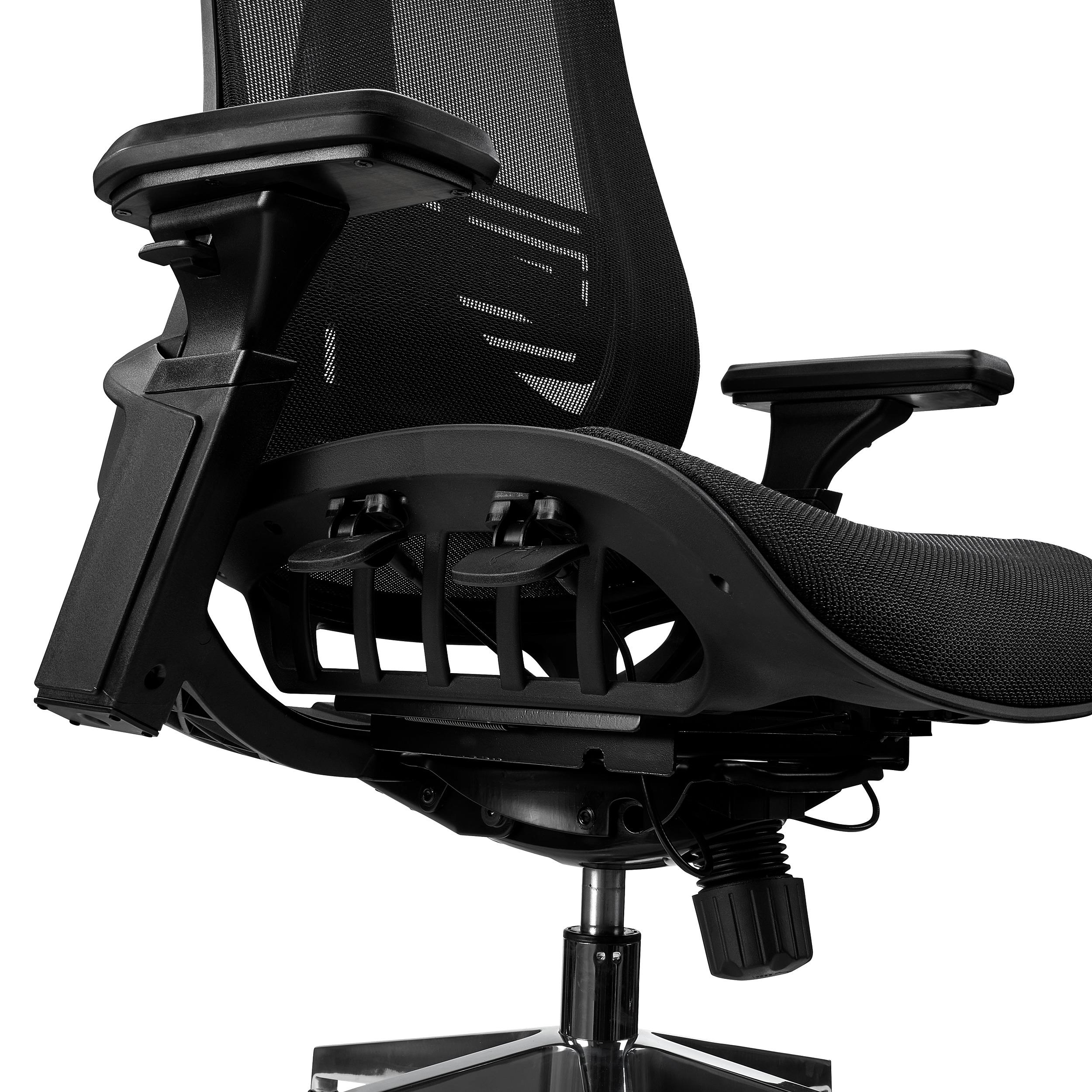 Podłokietniki z trójwymiarową regulacją (wysokość, głębokość i kąt nachylenia) posiadają miękkie poduszki z gumy. Zagłówek z regulacją wysokości oraz kąta nachylenia jest szczególnie wygodny ze względu na swoją nieprzeciętną szerokość.