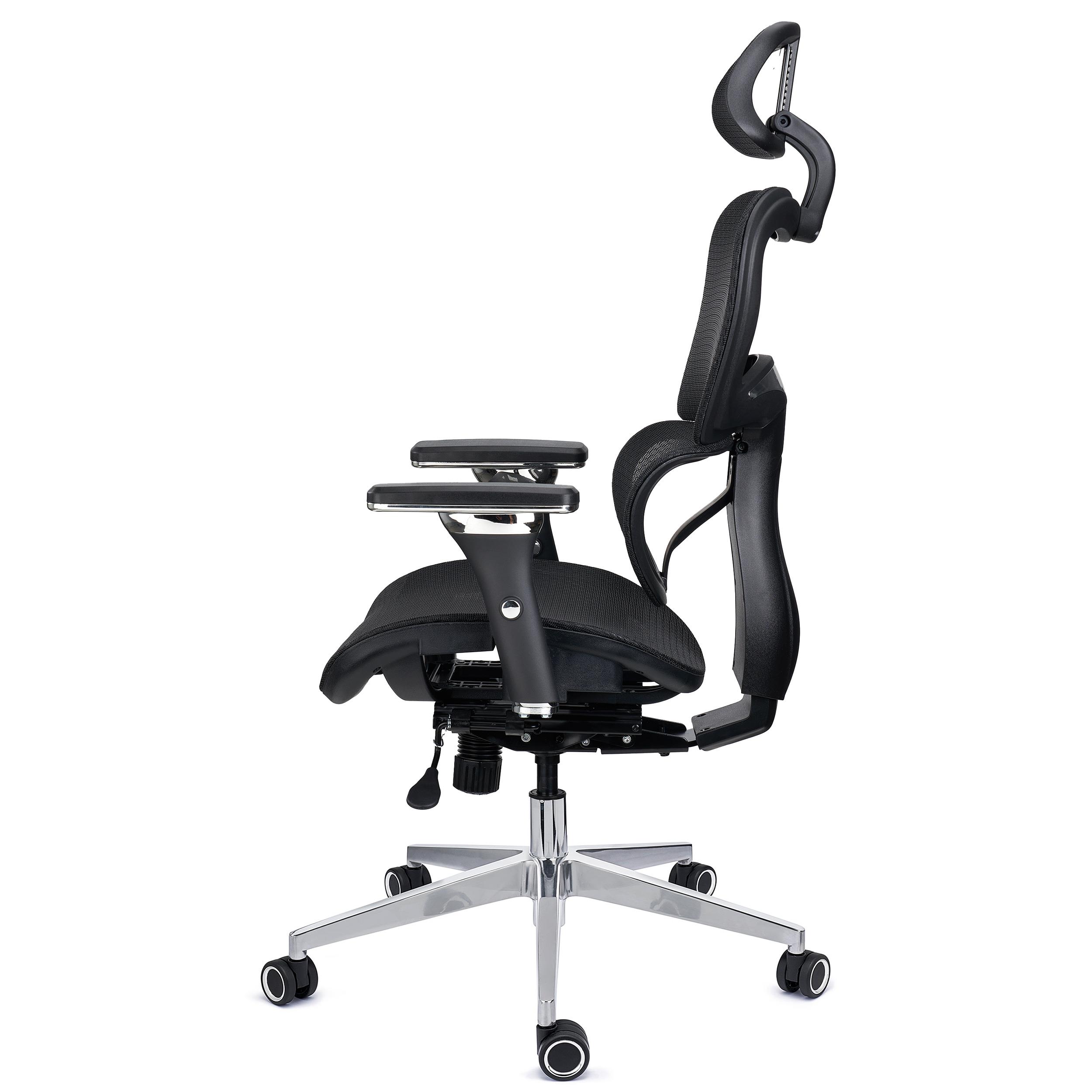 Podłokietniki z trójwymiarową regulacją (wysokość, głębokość i kąt nachylenia) i chromowanym wykończeniem dopełniają wyjątkowości tego produktu. Nie mogło zabraknąć także szerokiego zagłówka z regulacją wysokości i kąta nachylenia, która dodatkowo zwiększa zakres możliwości dopasowania fotela do użytkownika.