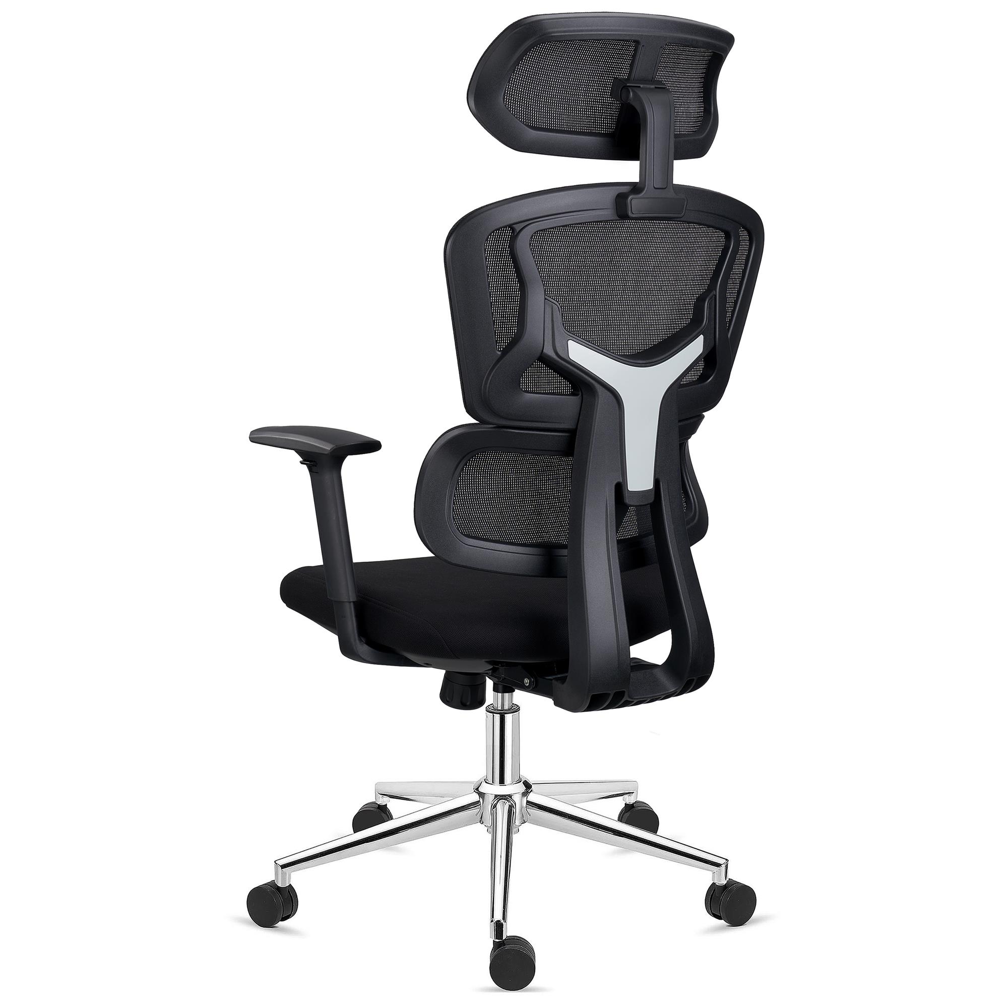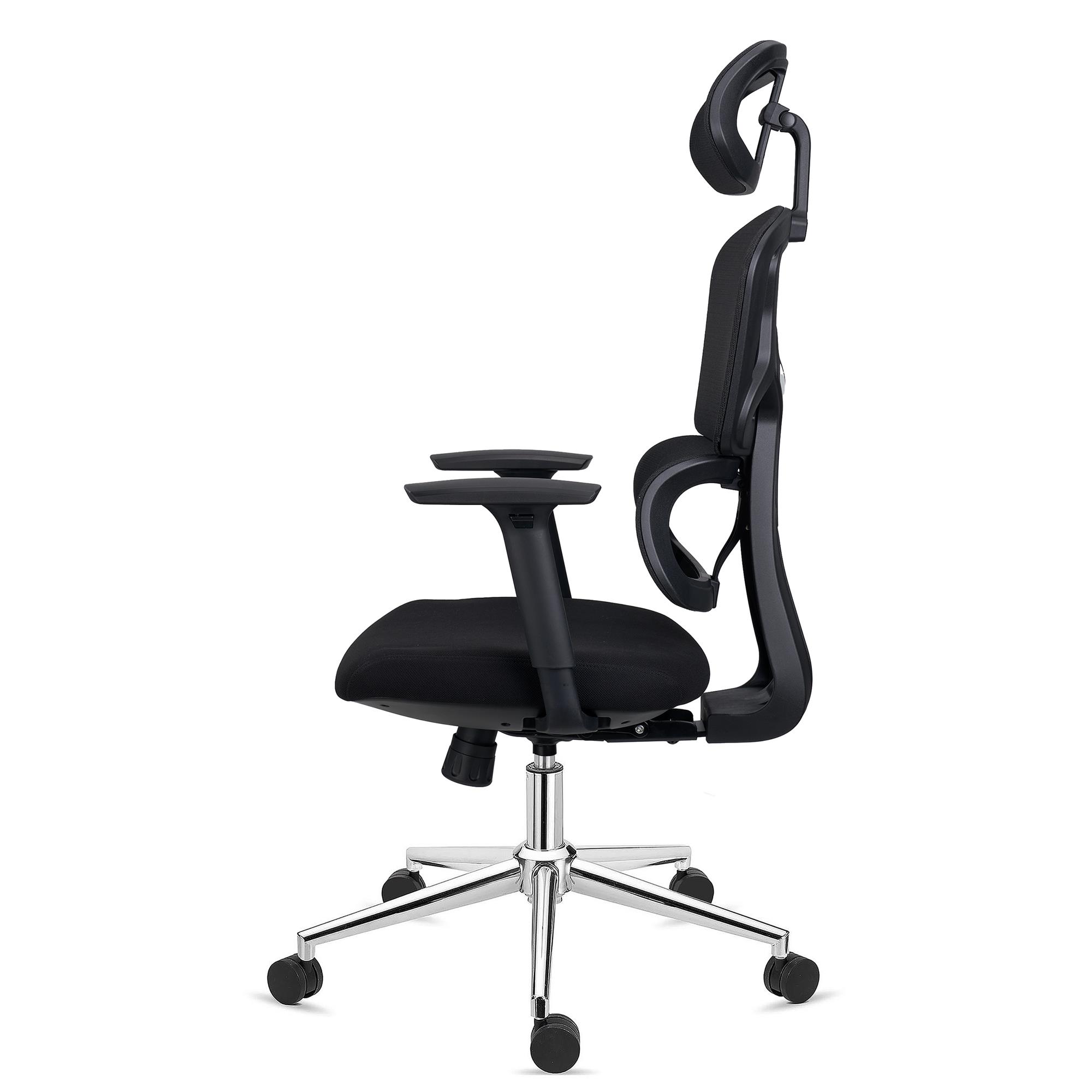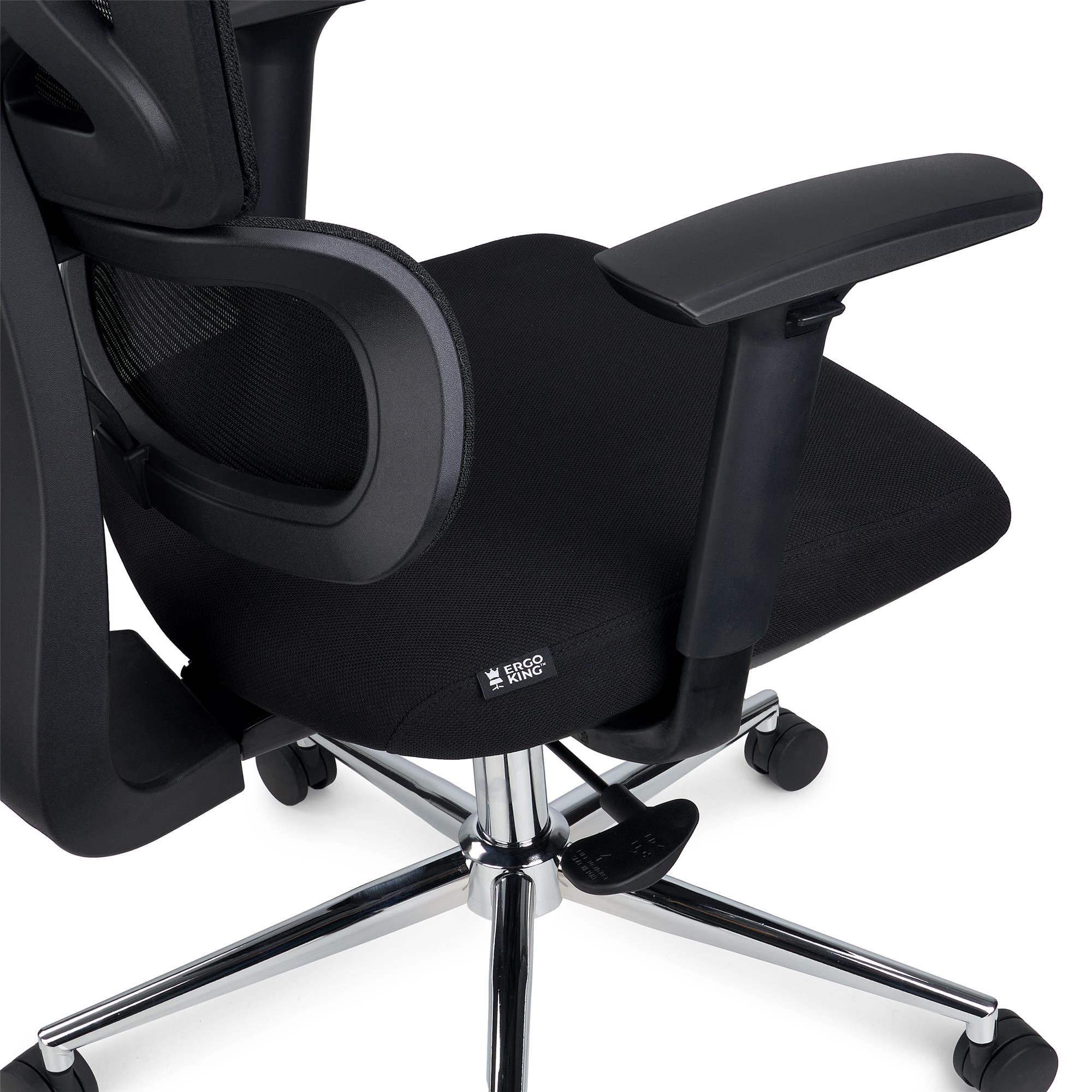 Ergonomii krzesła dopełniają podłokietniki o regulowanej wysokości z gumowymi nakładkami. Zagłówek jest wyjątkowo szeroki, działając niemal jak przedłużenie oparcia. Posiada on regulację wysokości i kąta nachylenia, co ułatwia znalezienie optymalnej pozycji.