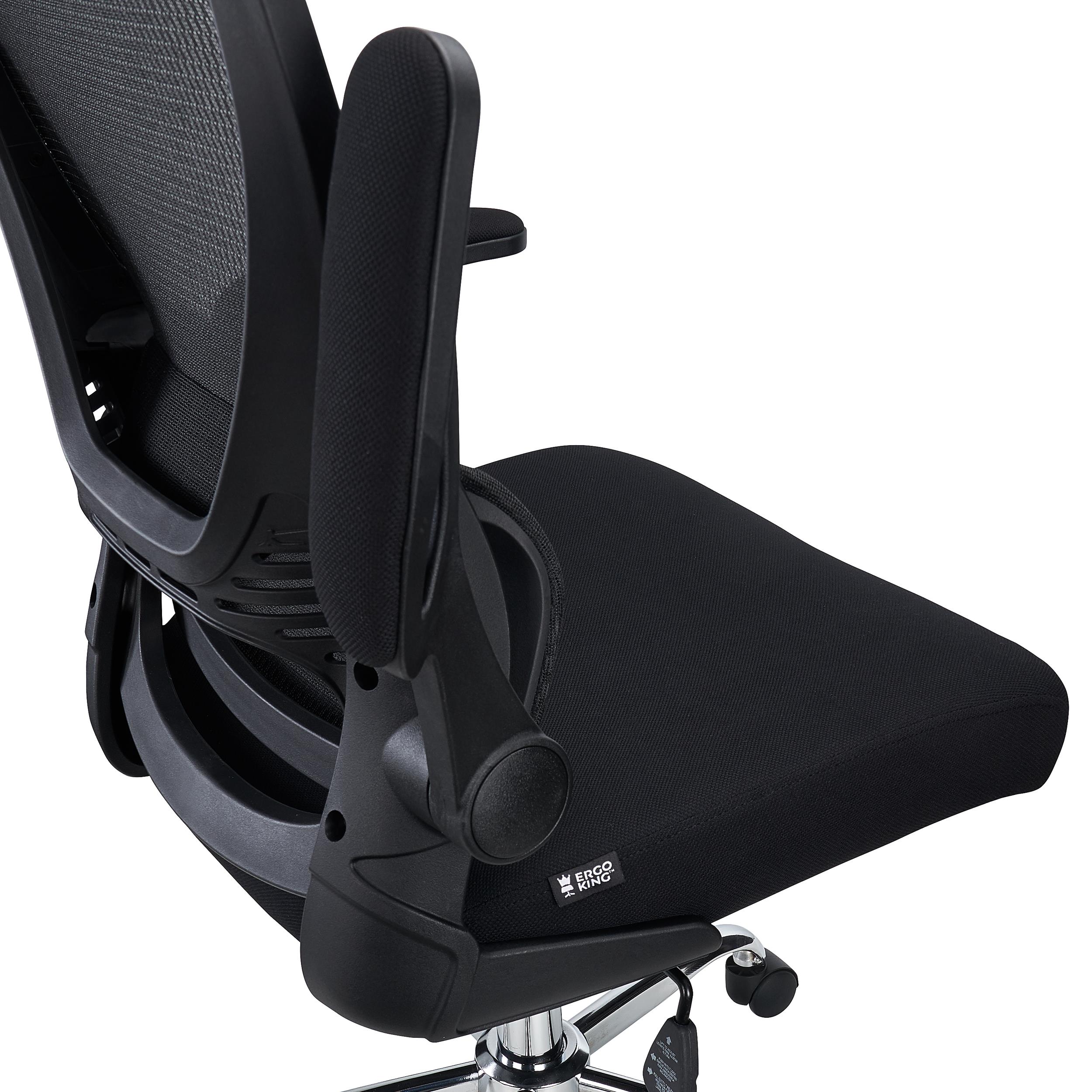 Ergonomia tego krzesła sprawia, że nadaje się do intensywnego 8-godzinnego użytkowania. Oprócz wygody siedzenia, model wyróżniają jego składane podłokietniki. Dzięki tapicerowaniu są bardzo wygodne i praktyczne. Składają się do tyłu, podobnie jak podłokietniki w samolocie i można unieruchomić je w dowolnej pozycji.