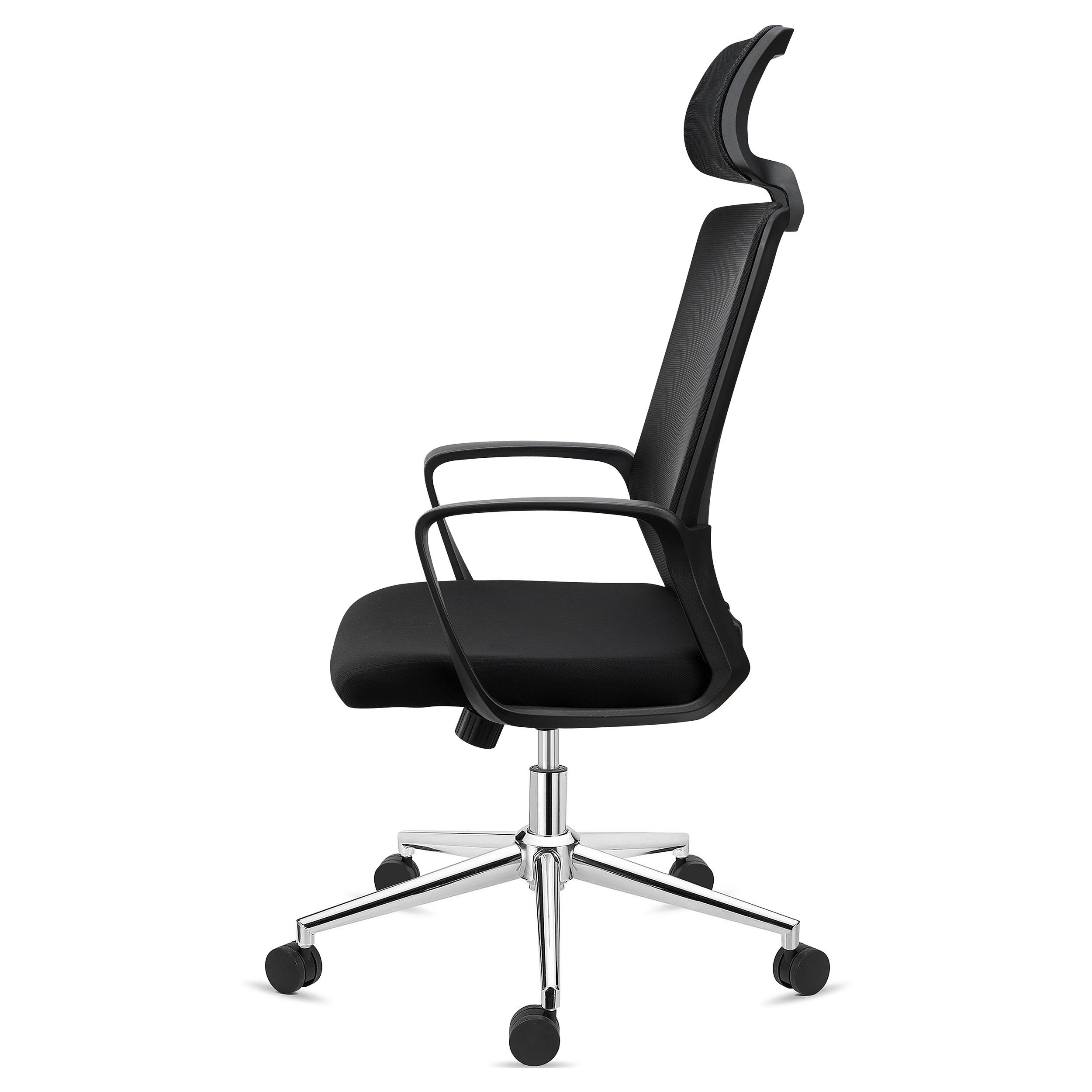 Designerskie podłokietniki łączą w sobie estetyczny wygląd z dużą wytrzymałością. Zostały zaprojektowane, aby ułatwić przyjęcie prawidłowej postawy podczas siedzenia, co skutkuje również większą wygodą. Ten model posiada także zagłówek pokryty siatką stanowiący doskonałe wsparcie głowy. Jest ono szczególnie ważne dla ochrony odcinka szyjnego podczas długotrwałej pracy na siedząco.