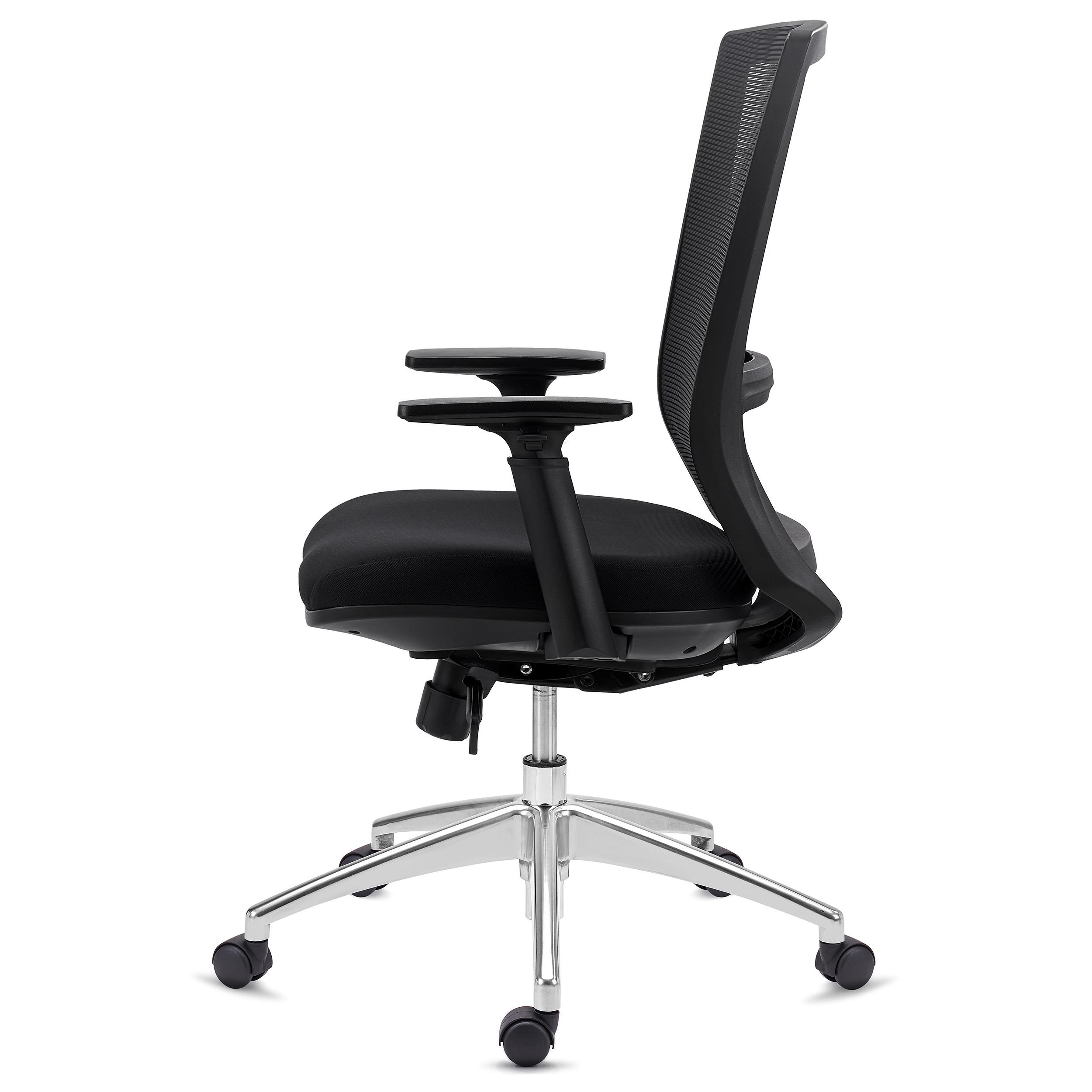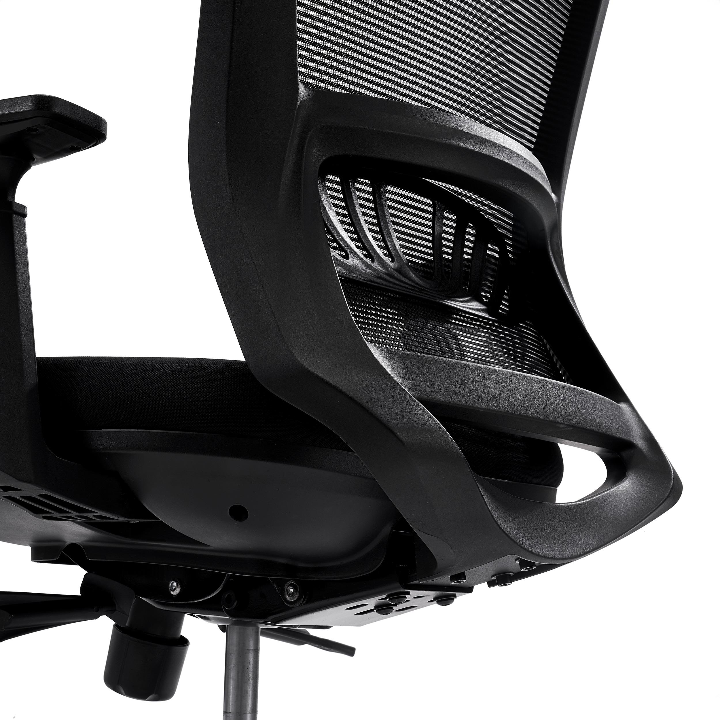 Szerokie oparcie z oddychającej siatki, wyposażone w regulowane na wysokość podparcie lędźwiowe, przyczyniają się do niezwykłej wygody tego modelu. Oparcie jest też wysokie i szerokie, dając odpowiednie podparcie całym plecom. Model polecany dla wysokich osób, które poszukują krzesła dopasowanego do ich wzrostu.