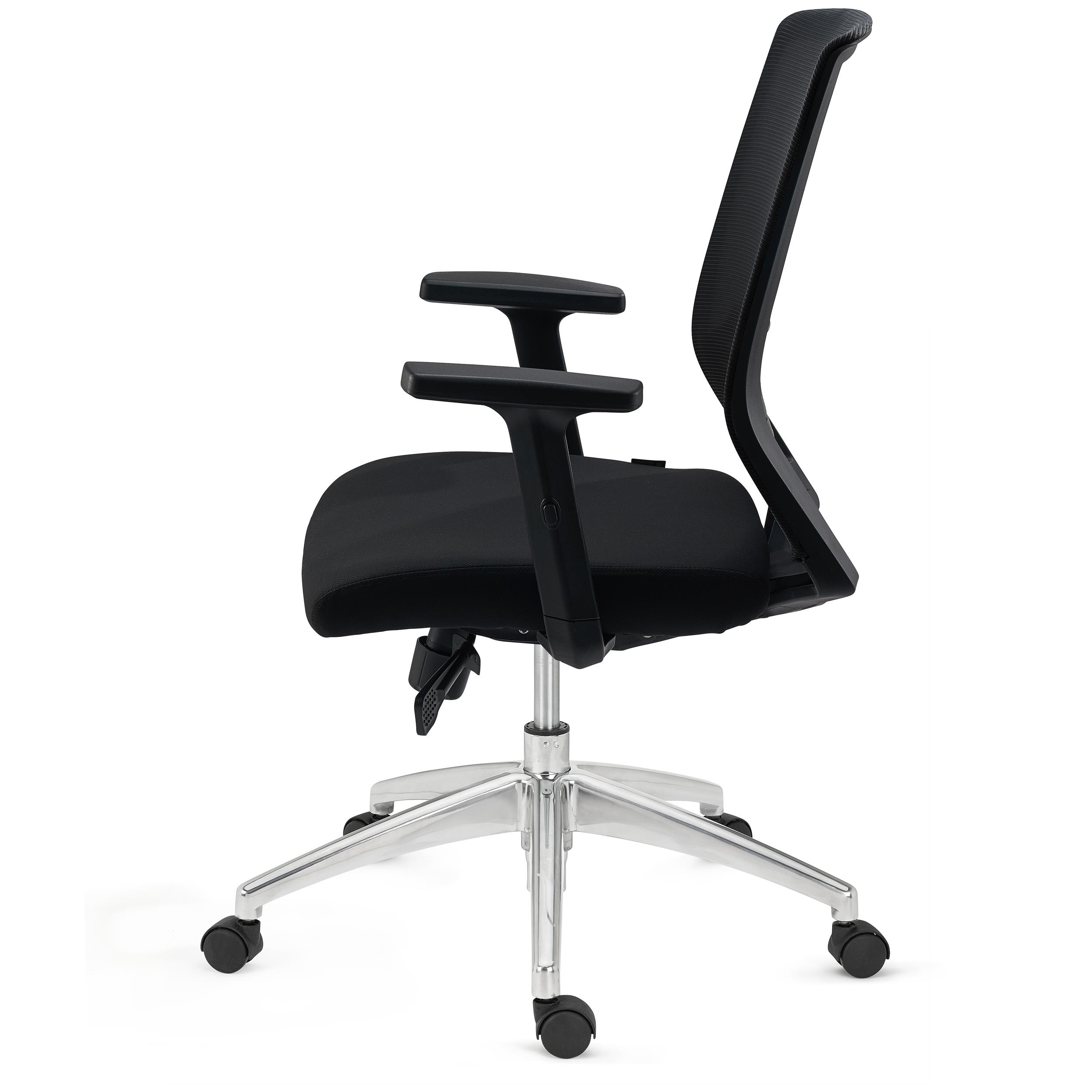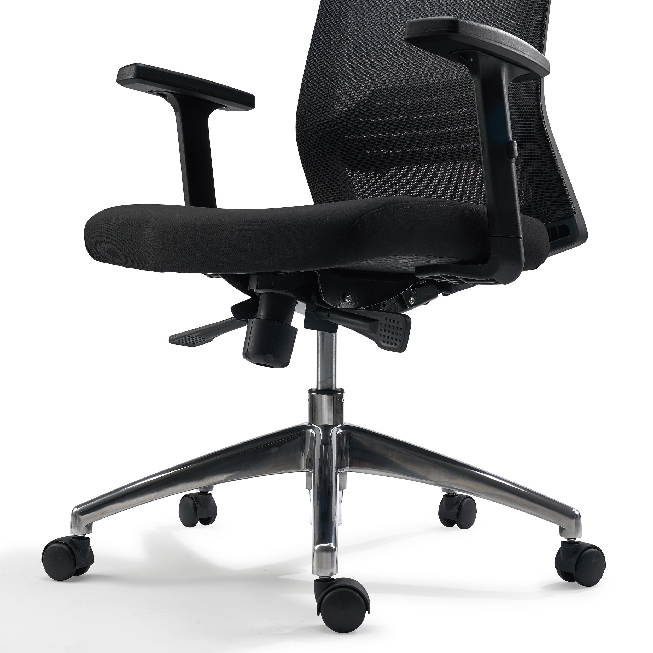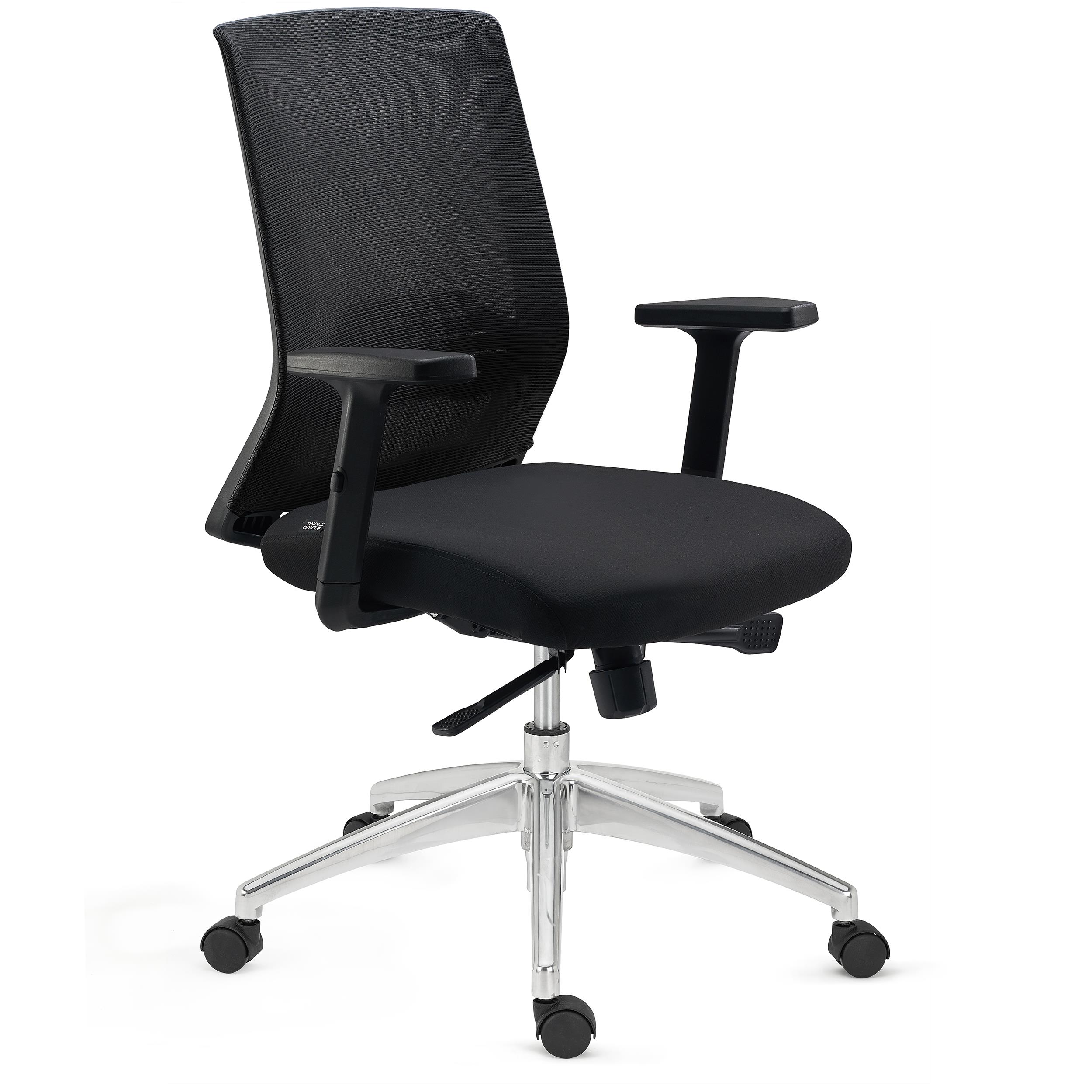 Tapicerka z oddychającej siatki i elastyczne podparcie lędźwiowe dają wygodę nawet podczas długogodzinnej pracy w pozycji siedzącej.