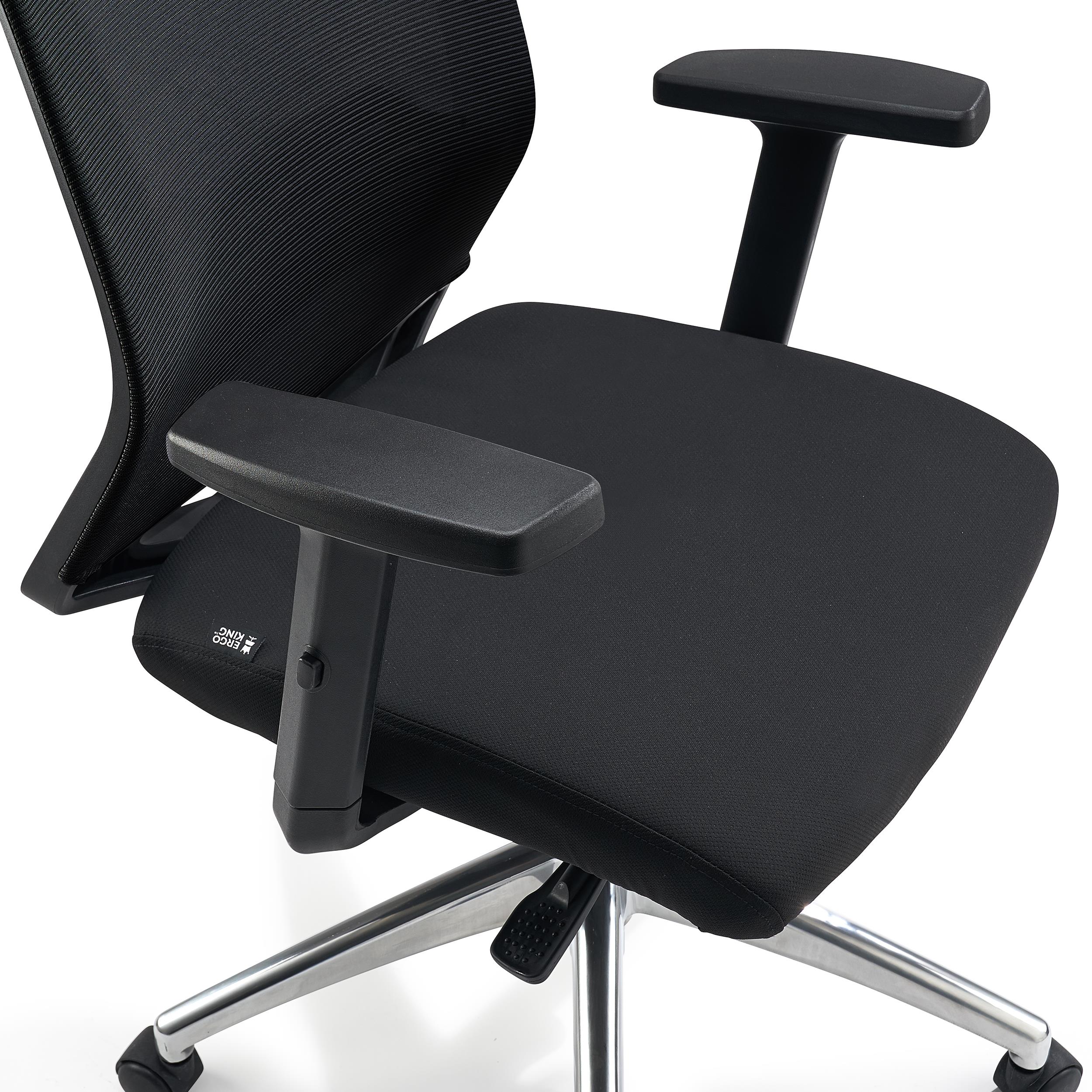 Podłokietniki z regulacją wysokości (6 pozycji) posiadają miękkie poduszki z gumy. Dzięki solidnej konstrukcji dają odpowiednie podparcie i sprzyjają przyjmowaniu prawidłowej postawy podczas pracy.