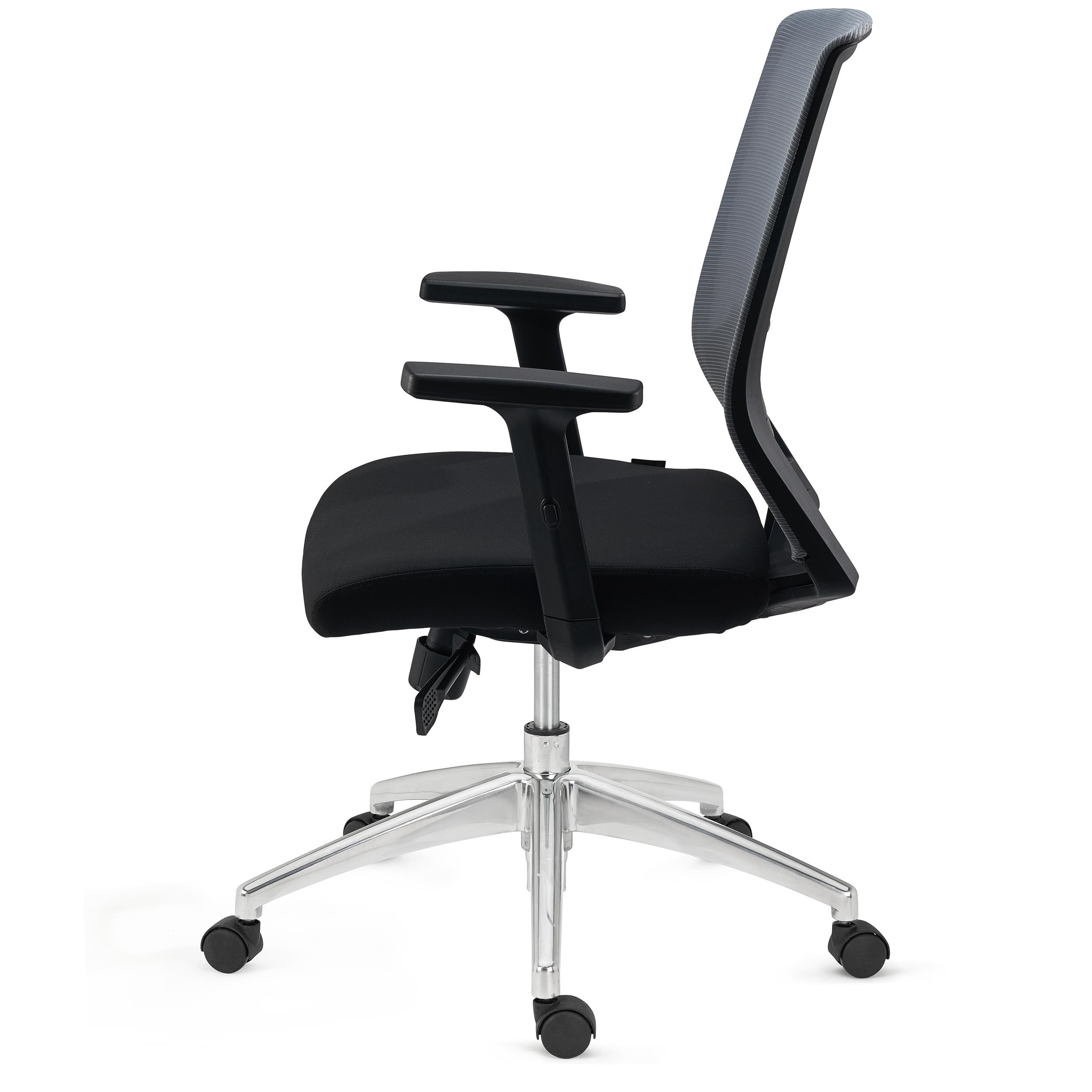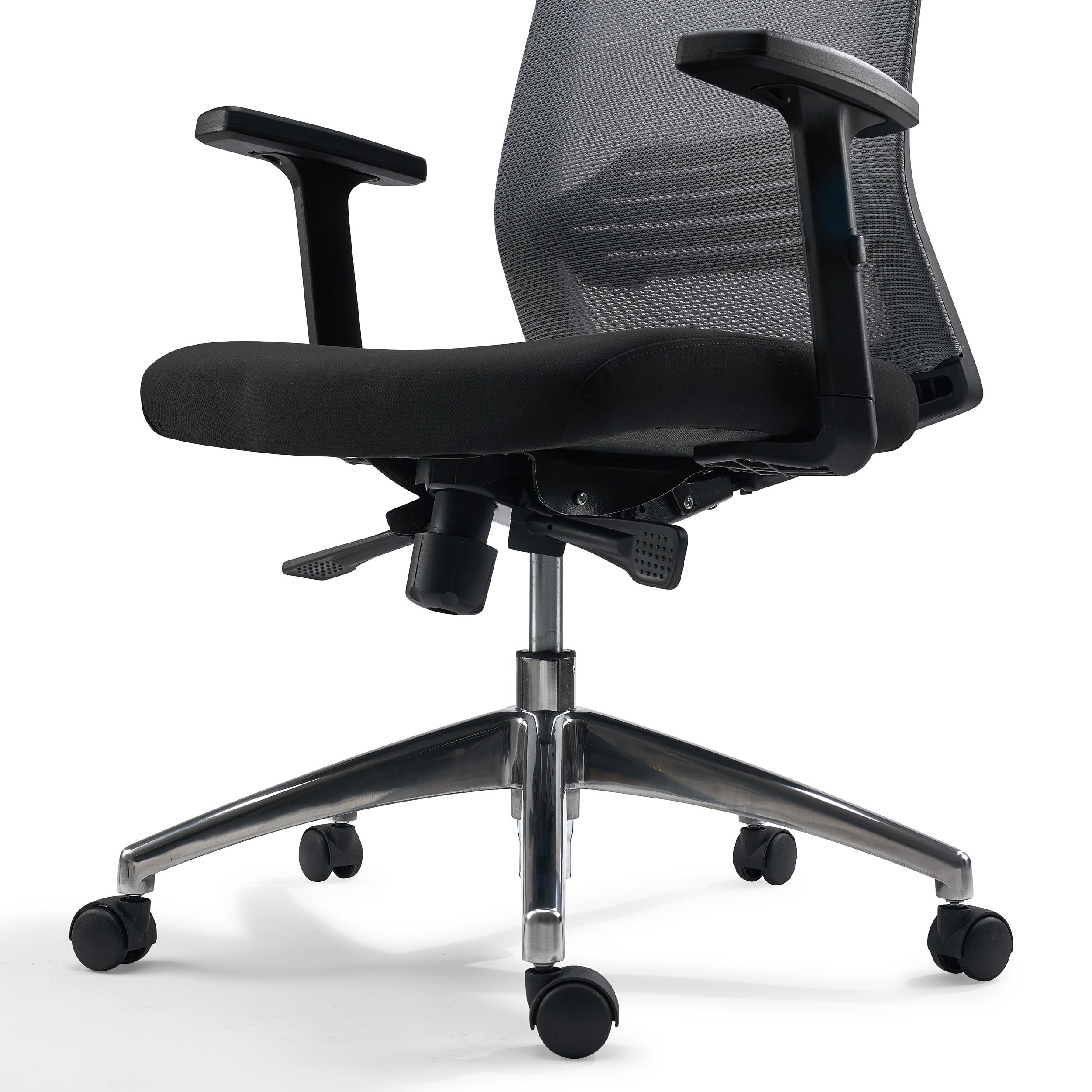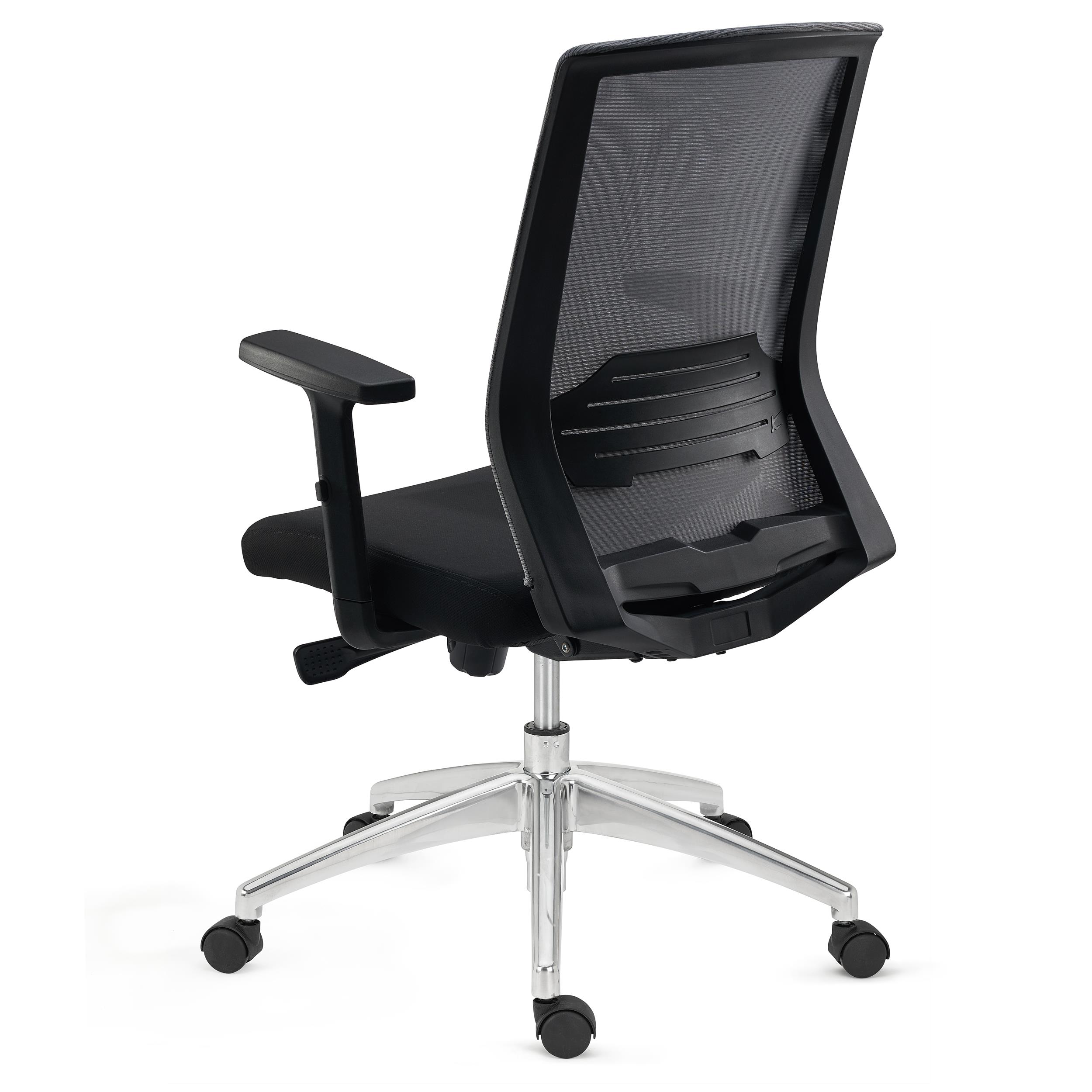 Tapicerka z oddychającej siatki i elastyczne podparcie lędźwiowe dają wygodę nawet podczas długogodzinnej pracy w pozycji siedzącej.