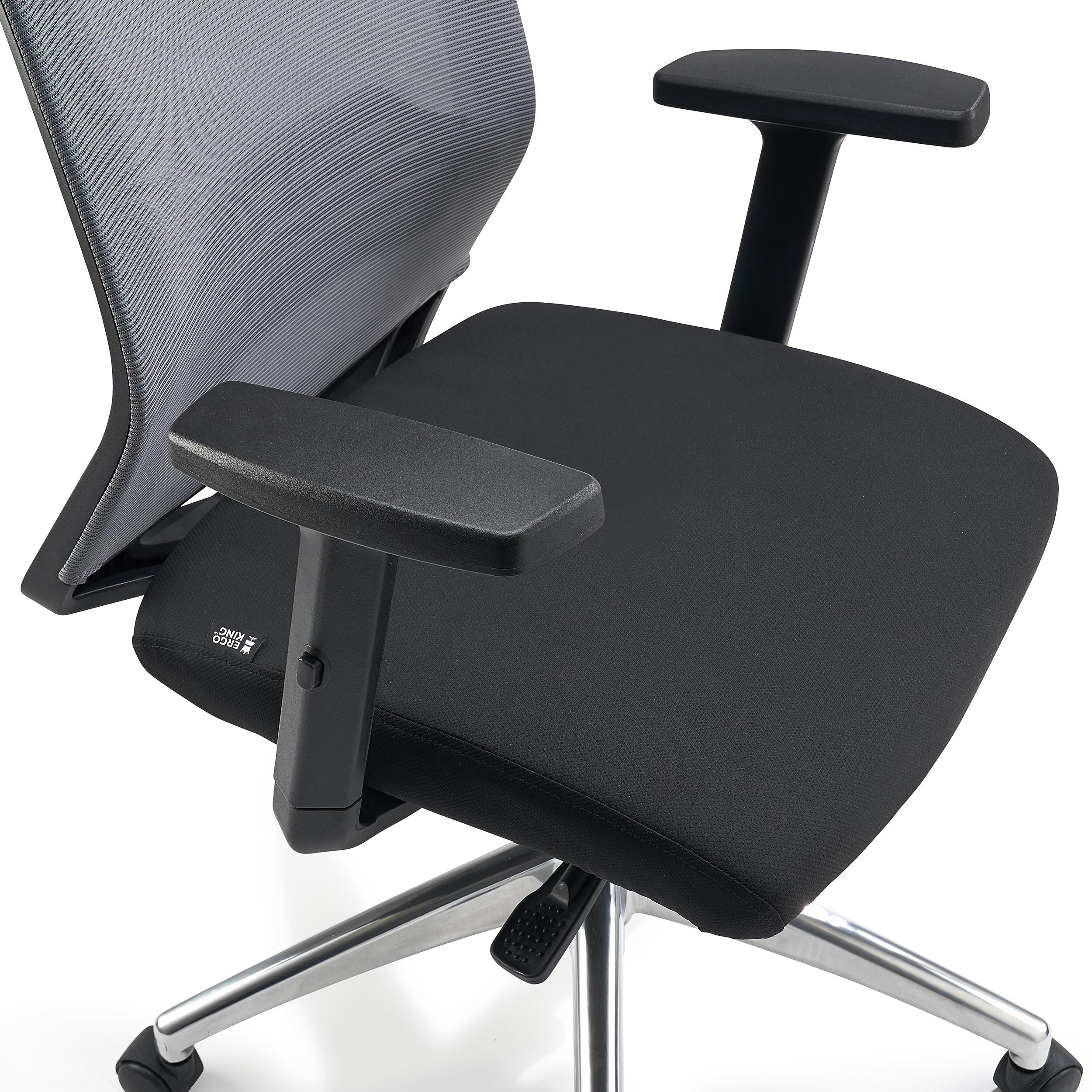 Podłokietniki z regulacją wysokości (6 pozycji) posiadają miękkie poduszki z gumy. Dzięki solidnej konstrukcji dają odpowiednie podparcie i sprzyjają przyjmowaniu prawidłowej postawy podczas pracy.