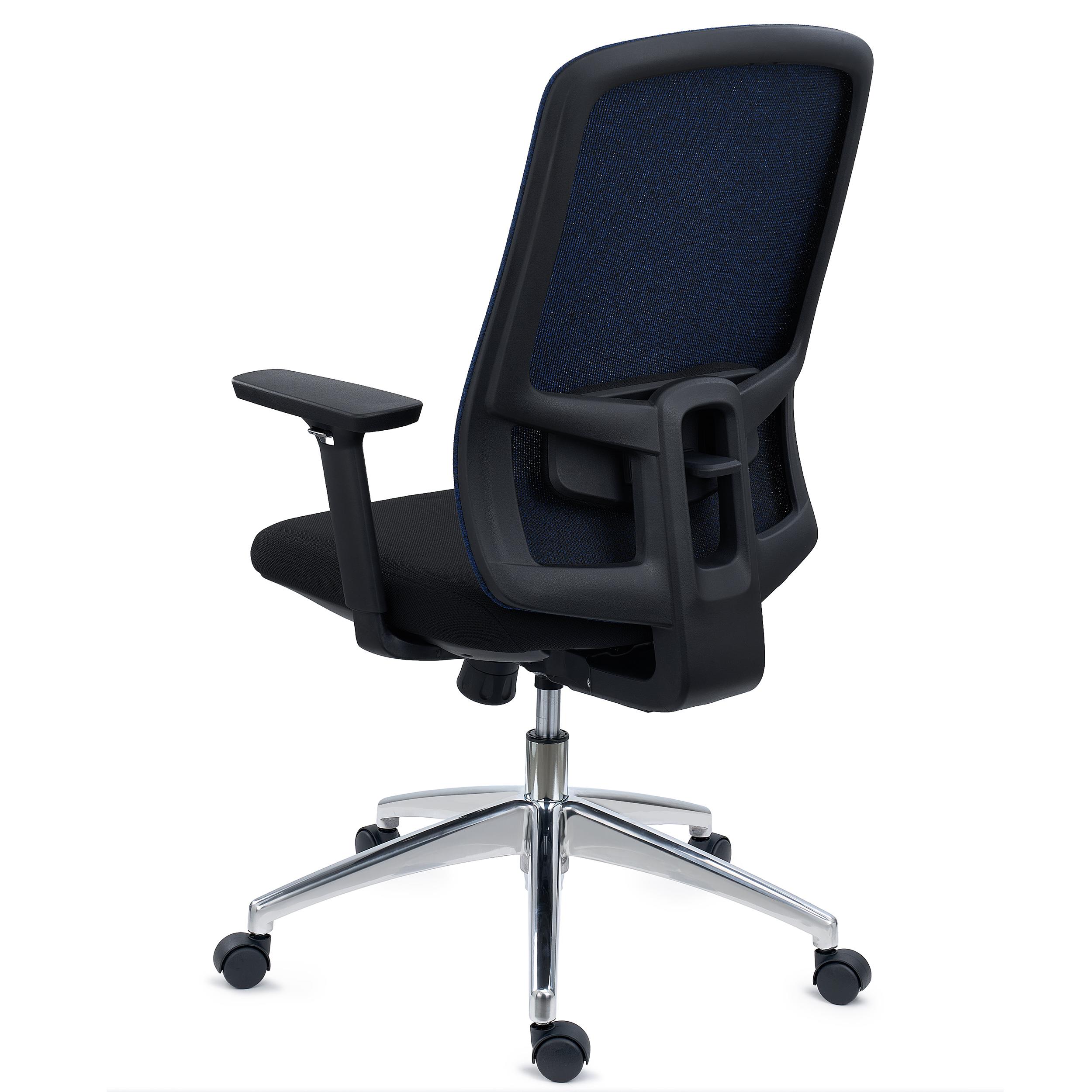 Oparcie z oddychającej siatki ma regulowaną wysokość podparcia lędźwiowego. Jest to kolejna kluczowa cecha tego modelu, ponieważ dolna część pleców jest jedną z najbardziej wrażliwych części ciała. Jego krzywizna i specjalnie opracowany kształt zapewniają plecom optymalne podparcie, niezbędne do intensywnego bezpiecznego użytkowania.