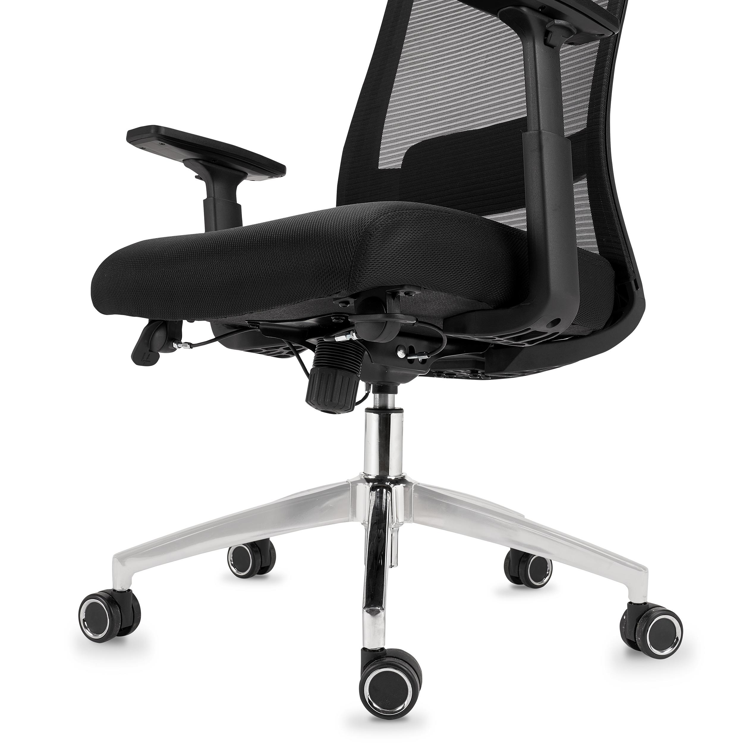 Wiele czynników wpływa na niezwykłą wygodę tego krzesła i, co za tym idzie, jego przystosowanie do profesjonalnego użytkowania. Jego oparcie wyposażone jest regulowane na wysokość podparcie lędźwiowe, dzięki czemu plecy będą miały zapewnione optymalne podparcie. Dodatkowo samo oparcie ma możliwość dwustopniowej regulacji głębokości: ustawienie bliżej i dalej od brzegu siedziska, co pozwala na jeszcze lepsze dostosowanie do użytkownika.