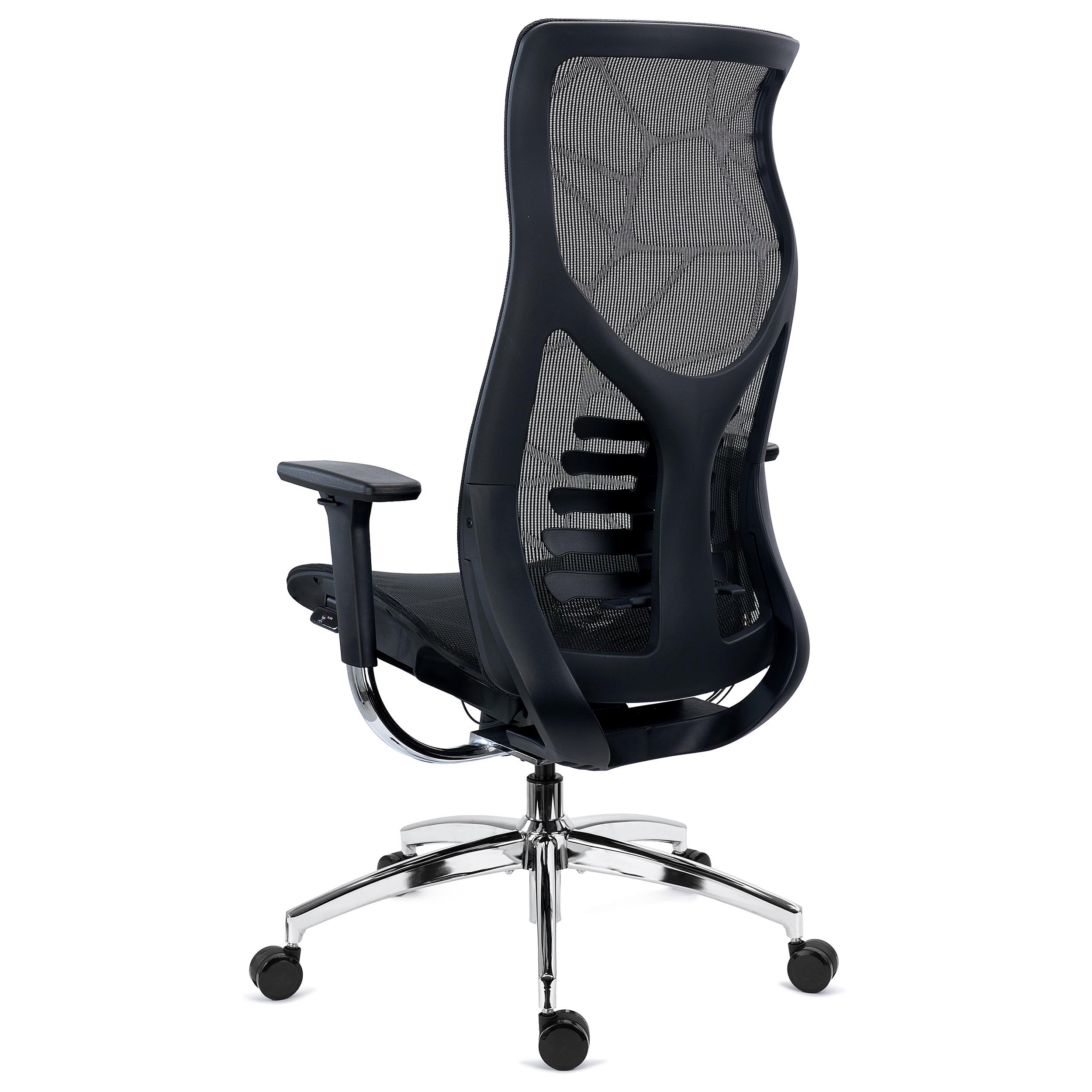 Wysokie, ergonomiczne oparcie zostało wyposażone w podparcie lędźwiowe z regulacją wysokości. Kształt podparcia lędźwiowego pozwala zapewnić wsparcie nie tylko w dolnej części pleców, co przekłada się na jeszcze większy komfort użytkowania. Fotel cechuje starannie dopracowane wzornictwo. Górna krawędź oparcia działa jak zagłówek, dopełniając wyrafinowanego projektu.
