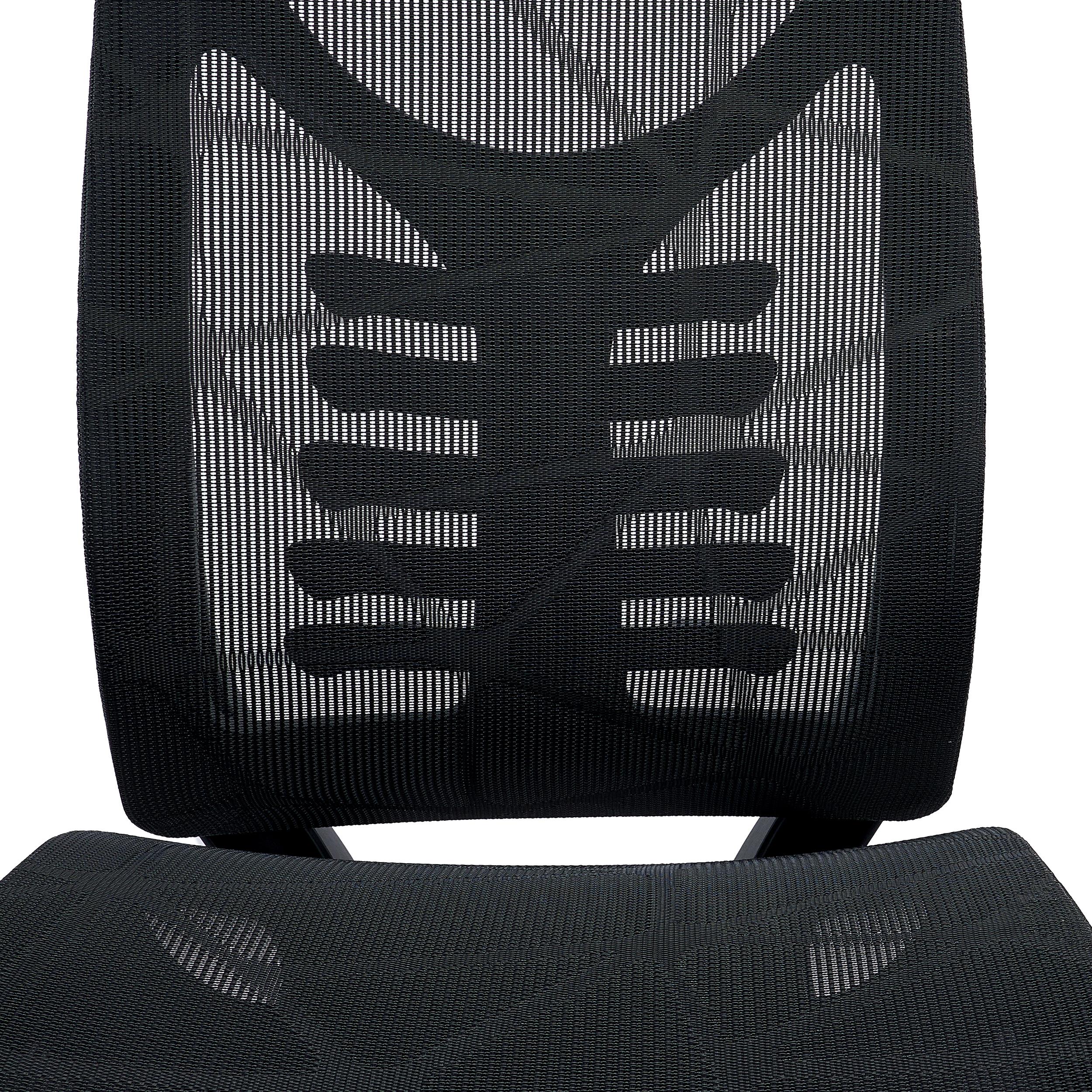 Nowoczesny i atrakcyjny design tego fotela uwzględnia zastosowanie oddychającej tapicerki z siatki. Materiał cechuje wysoka jakość wykończenia, przyjemne wrażenia dotykowe oraz duża wytrzymałość. Nieoczywisty wzór siatki jest niezwykle atrakcyjny, dodając odrobinę świeżości i nowoczesnego charakteru do dowolnego pomieszczenia, w którym zdecydujesz się ustawić to krzesło.
