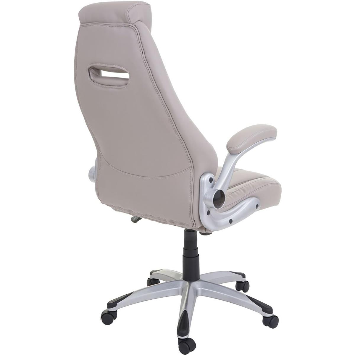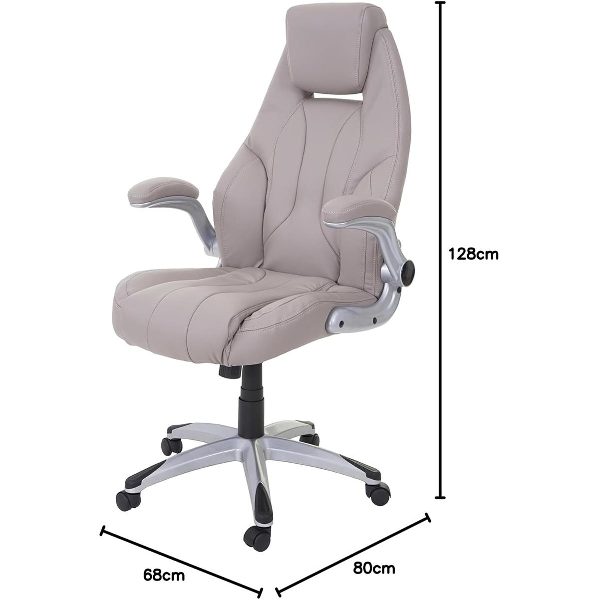 Fotel Biurowy BOBI, Komfortowa Wyściółka, Składane Podłokietniki, Skórzana Tapicerka, Szary Taupe