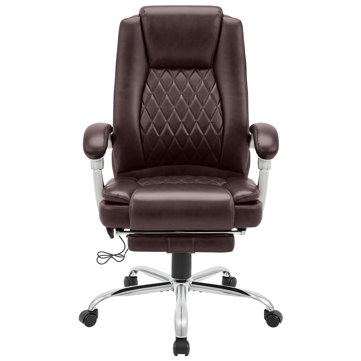 Fotel Biurowy CABUYA, Wysuwany Podnóżek, Funkcja Masażu, Skóra kolor Brązowy