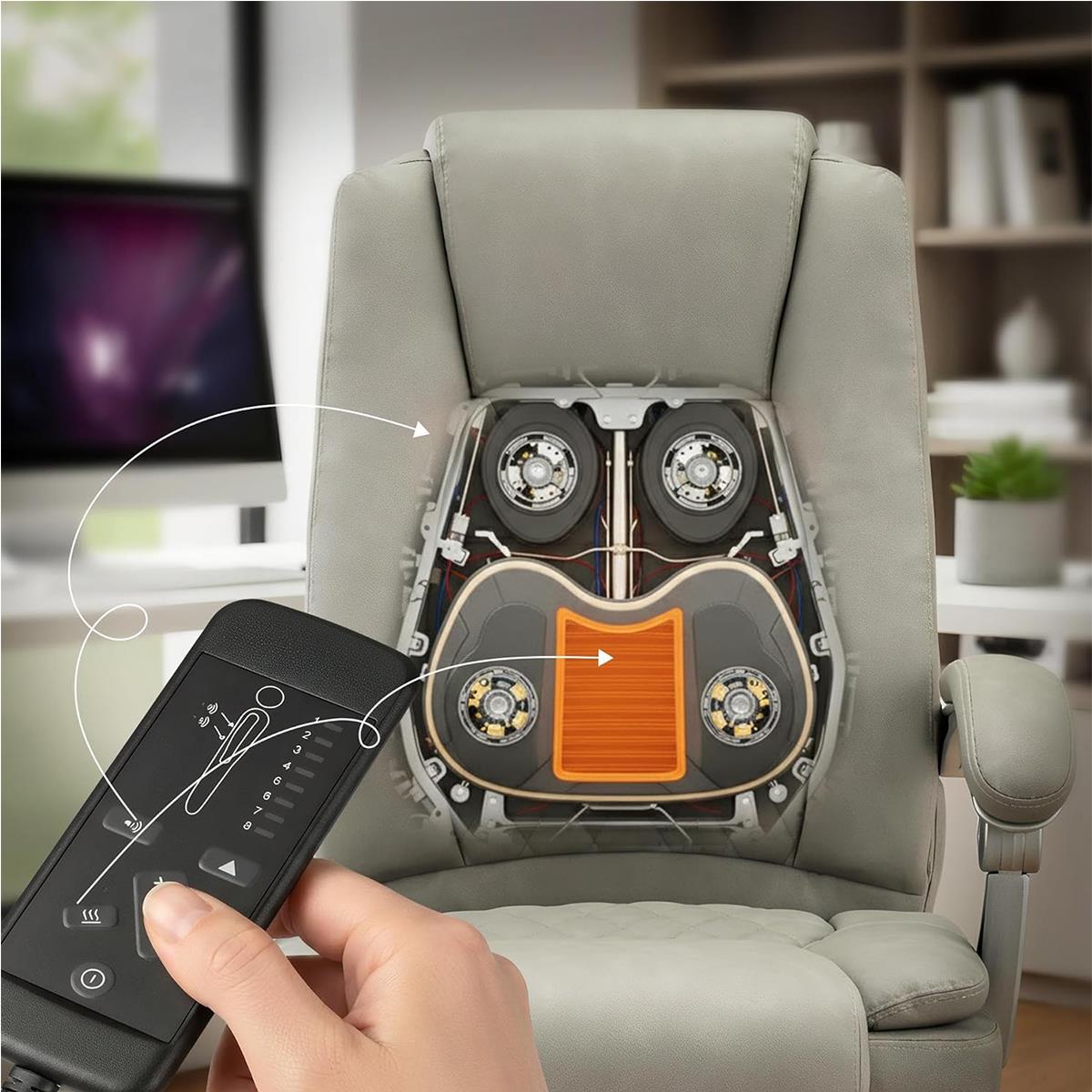 Model ten posiada wbudowaną funkcję masażu w 4 punktach, z czterema różnymi trybami i regulacją intensywności, pozwalając rozładować napięcie nagromadzone podczas dnia pracy. Ponadto fotel posiada funkcję podgrzewania siedziska, aby cieszyć się przyjemnym uczuciem komfortu o każdej porze roku. Każda przerwa w pracy staje się prawdziwym momentem relaksu.