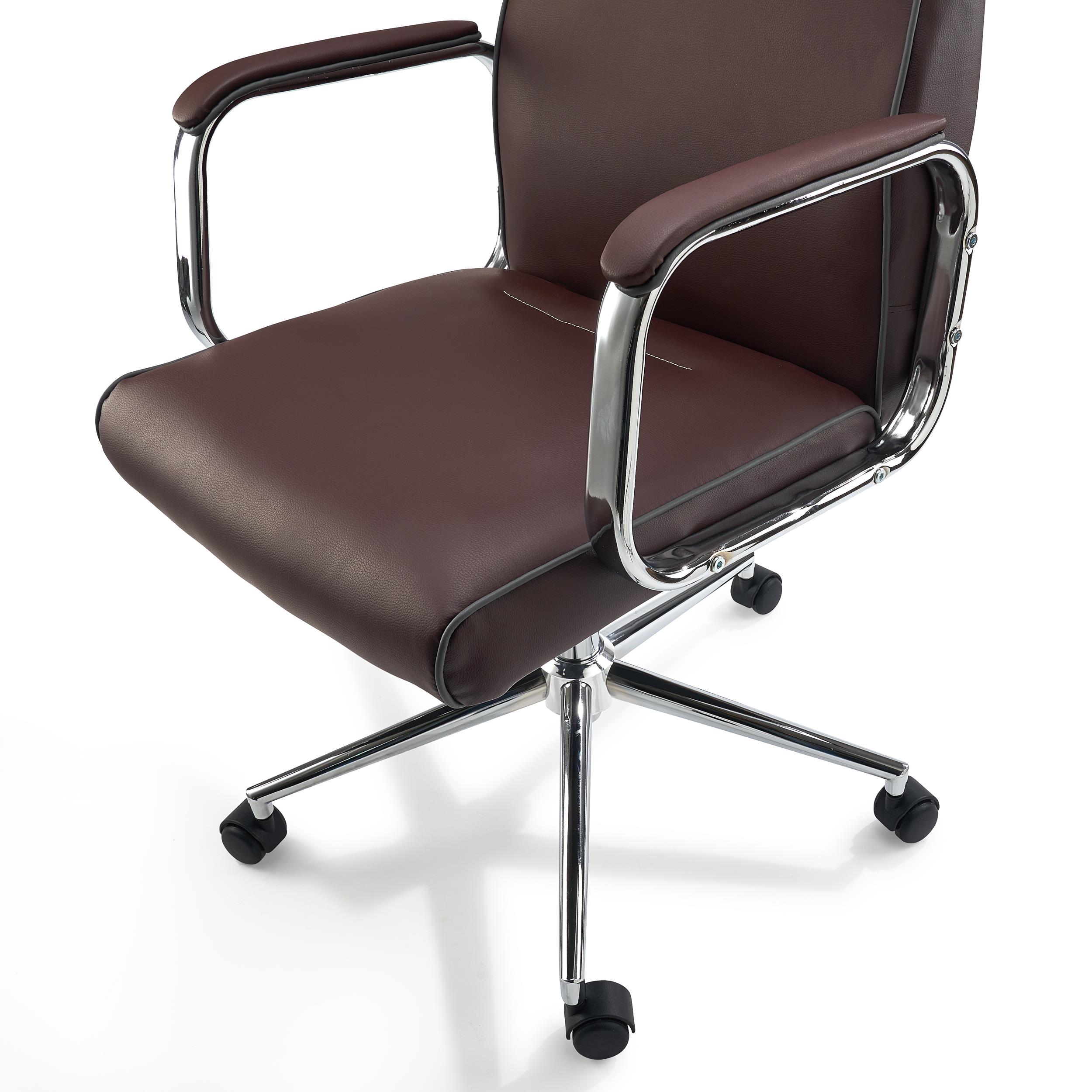 Fotel Biurowy DETROIT, Elegancki Design, Metalowy Stelaż i Podłokietniki, Bardzo Wygodny, Skóra, Brązowy