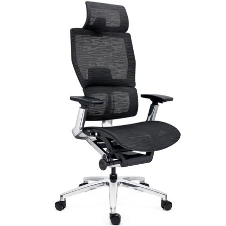 Oparcie fotela jest w pełni ergonomiczne, dynamicznie reaguje na nacisk ciała oraz zostało wyposażone w podparcie odcinka lędźwiowego i regulację wysokości. Ponadto fotel posiada wygodny zagłówek z regulacją wysokości umożliwiający wygodne oparcie głowy i odciążenie szyjnego odcinka kręgosłupa.