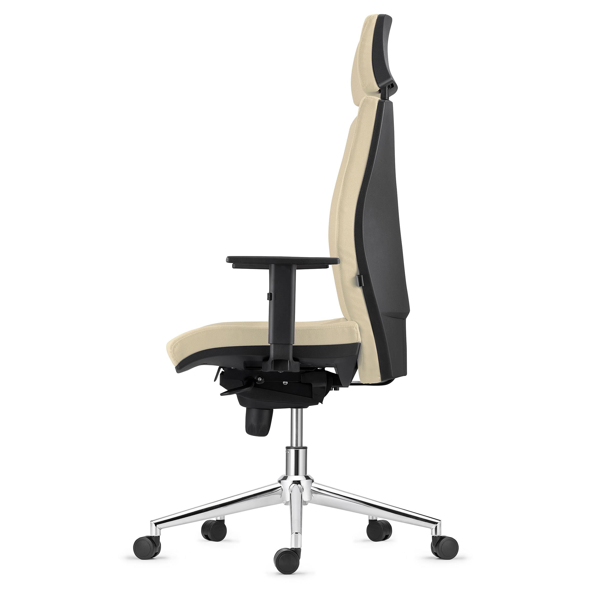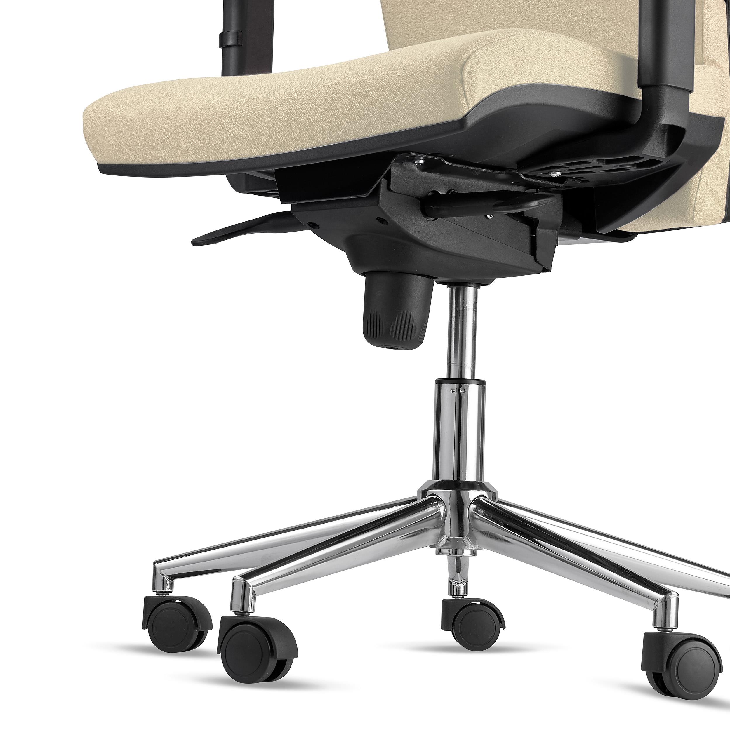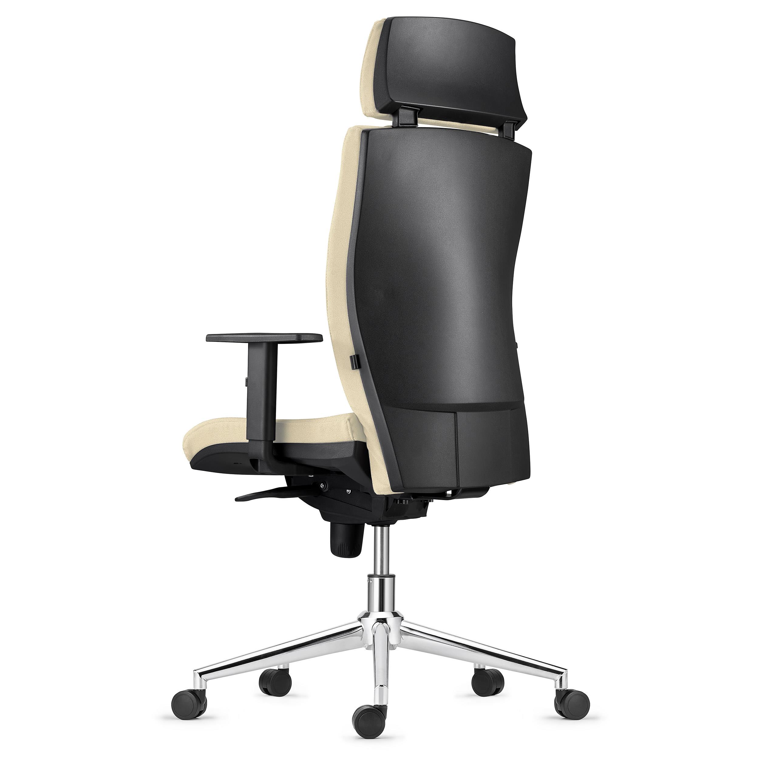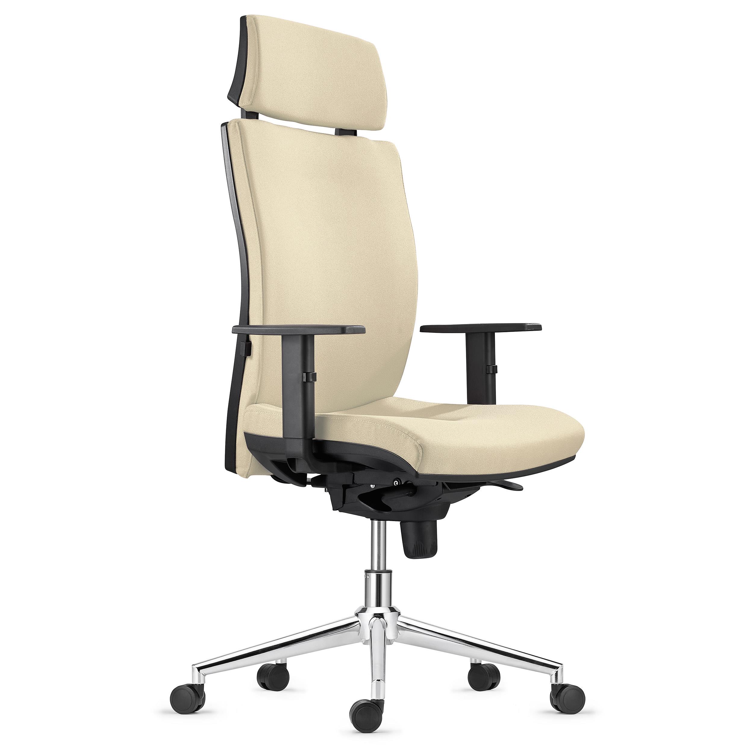 Fotel Biurowy Ergonomiczny MARVEL, Kremowa Tkanina, Metalowa Podstawa, Zagłówek i Podparcie Lędźwiowe