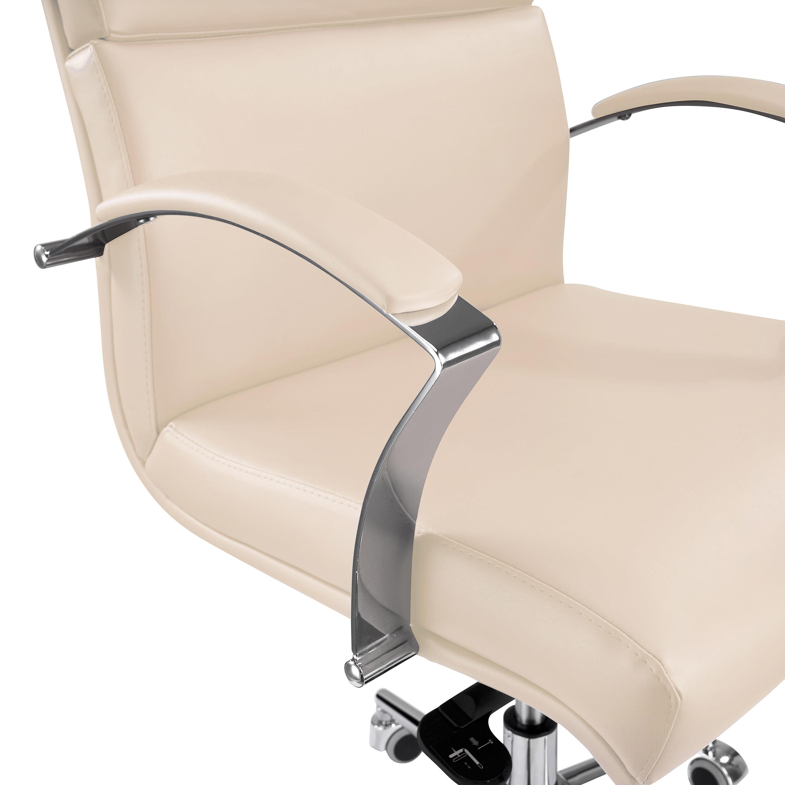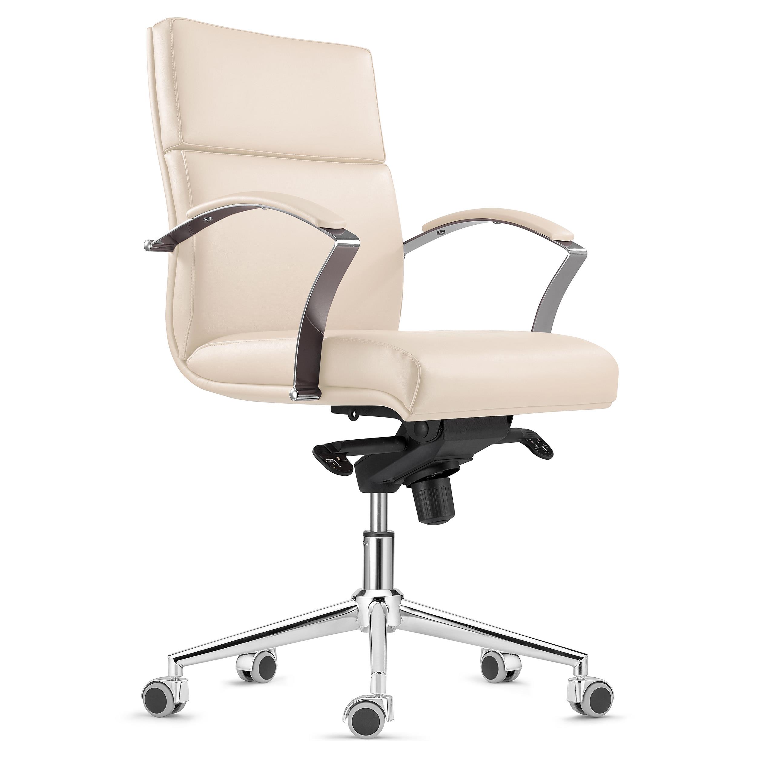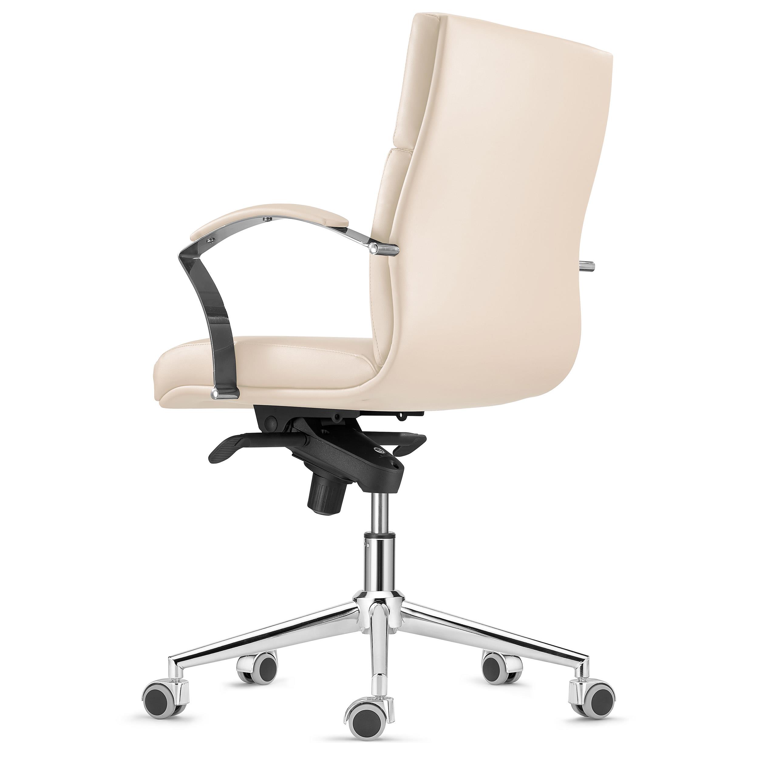 Fotel Biurowy Ergonomiczny RABAT, Średnie Oparcie, Skórzany kolor Kremowy, Funkcja Bujania