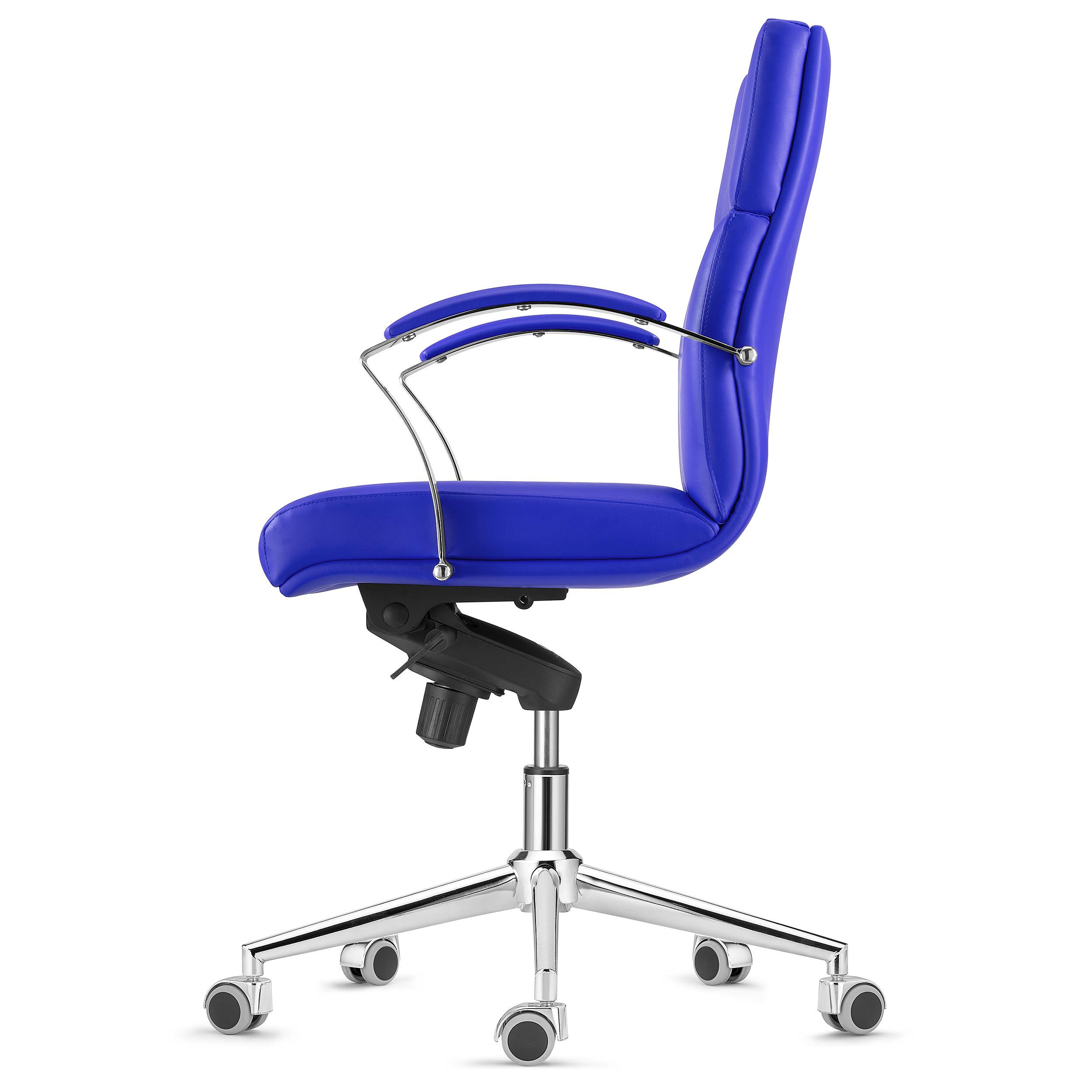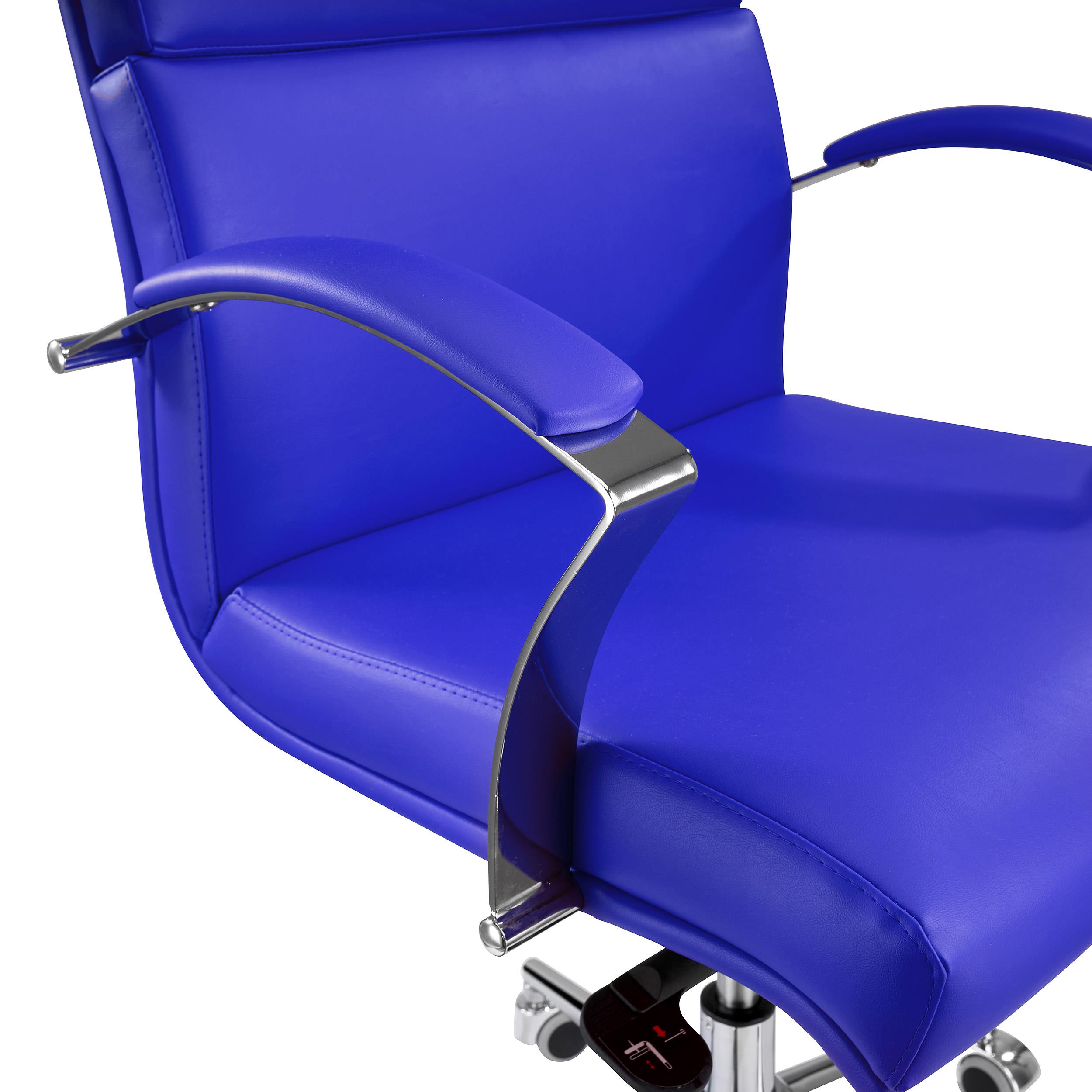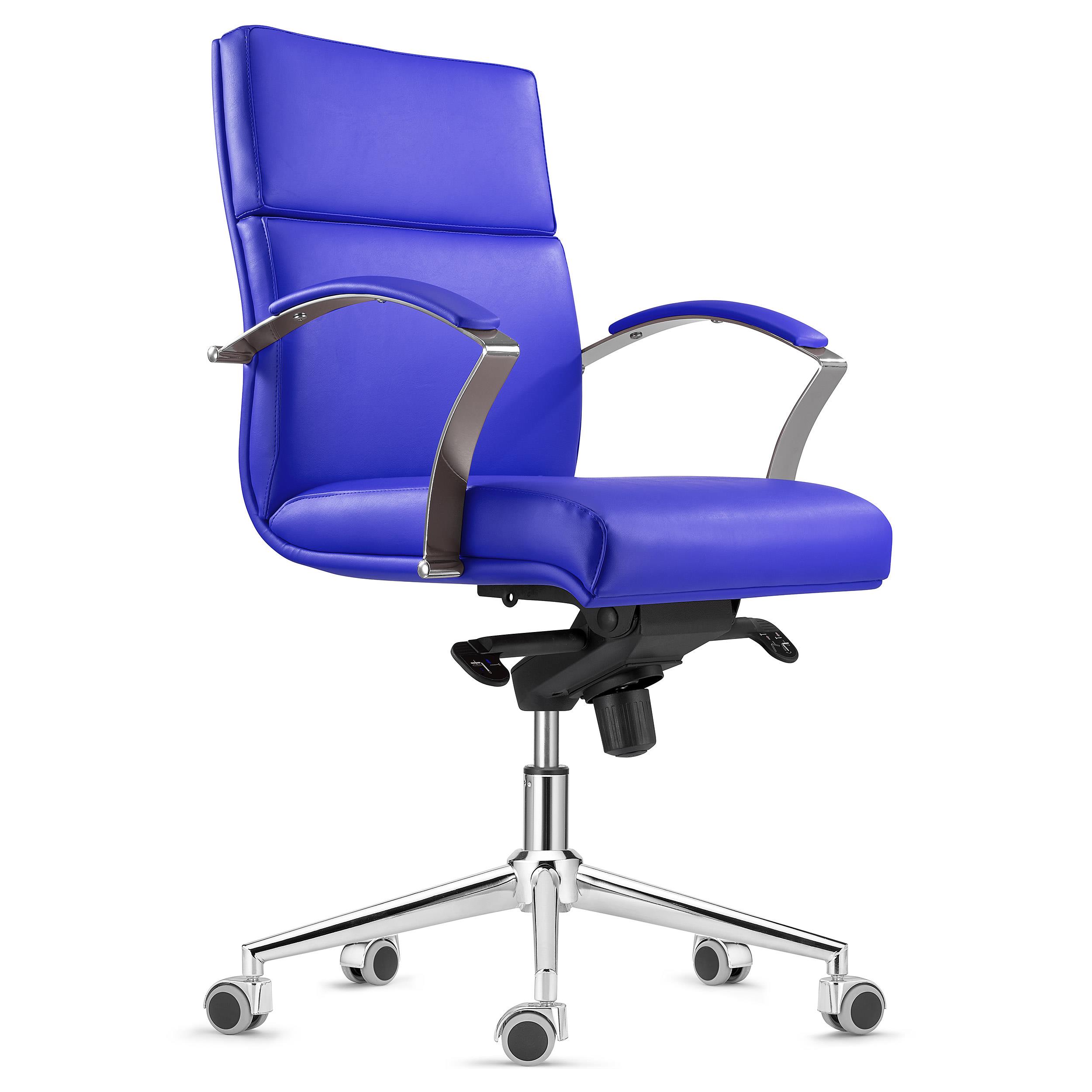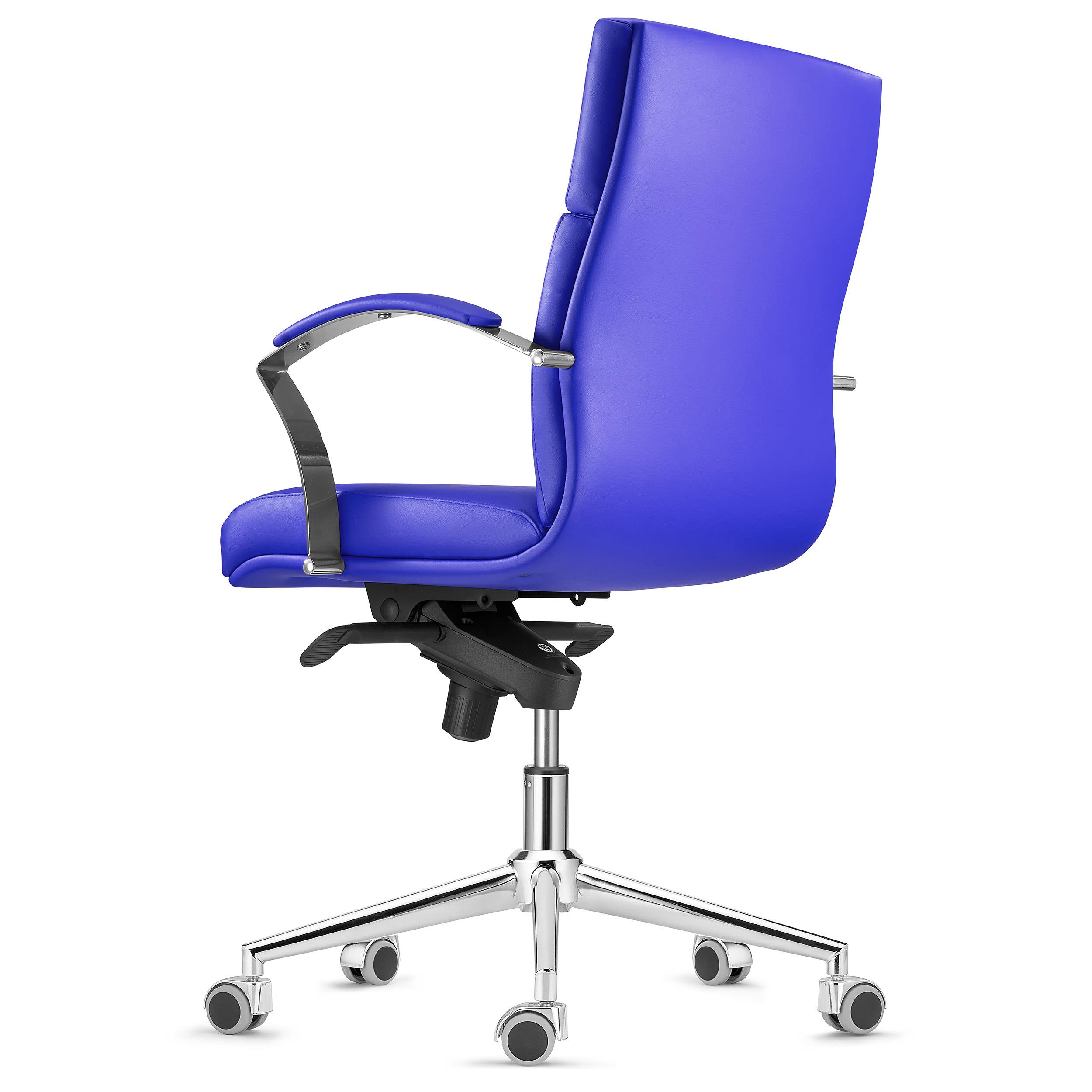 Fotel Biurowy Ergonomiczny RABAT, Średnie Oparcie, Skórzany kolor Niebieski, Funkcja Bujania