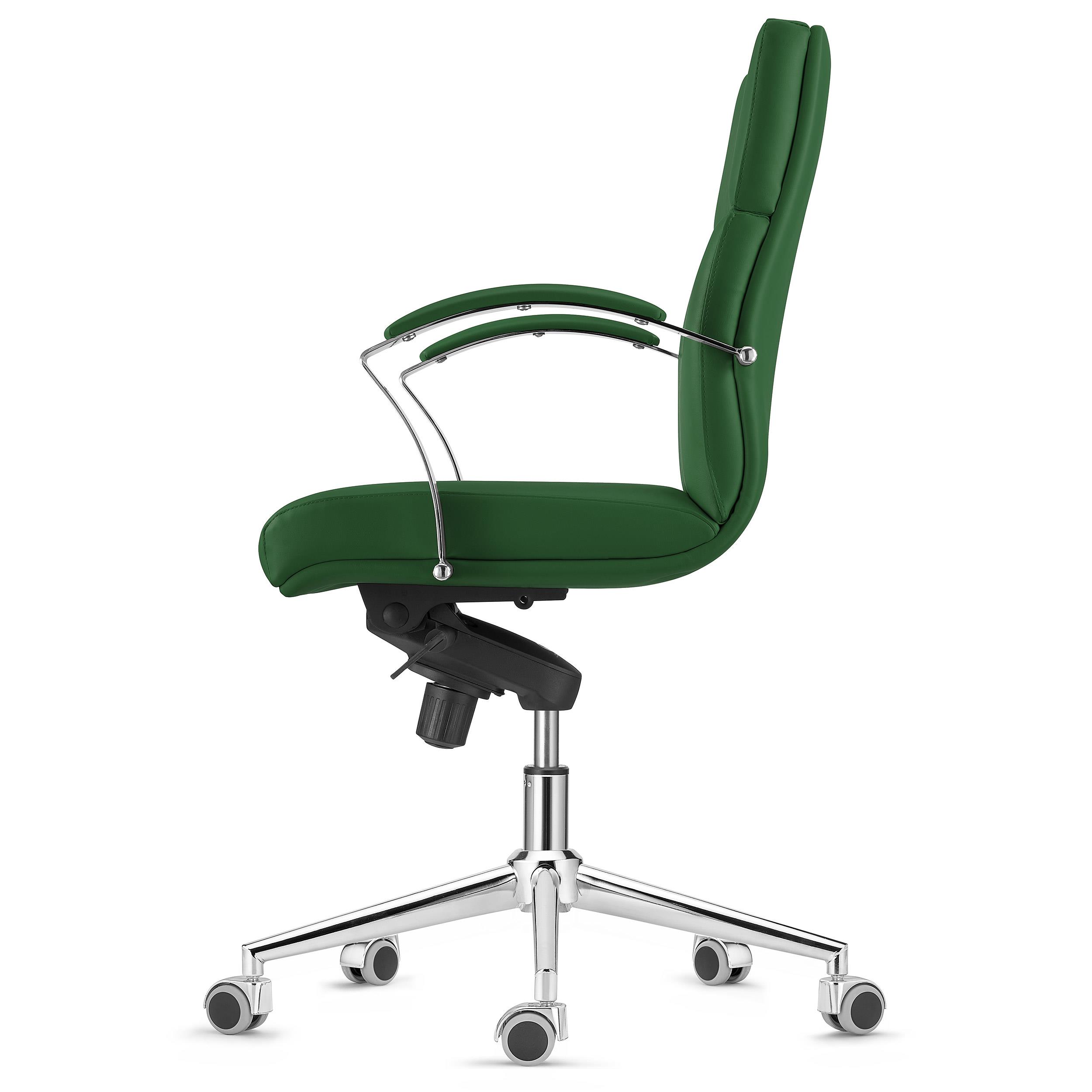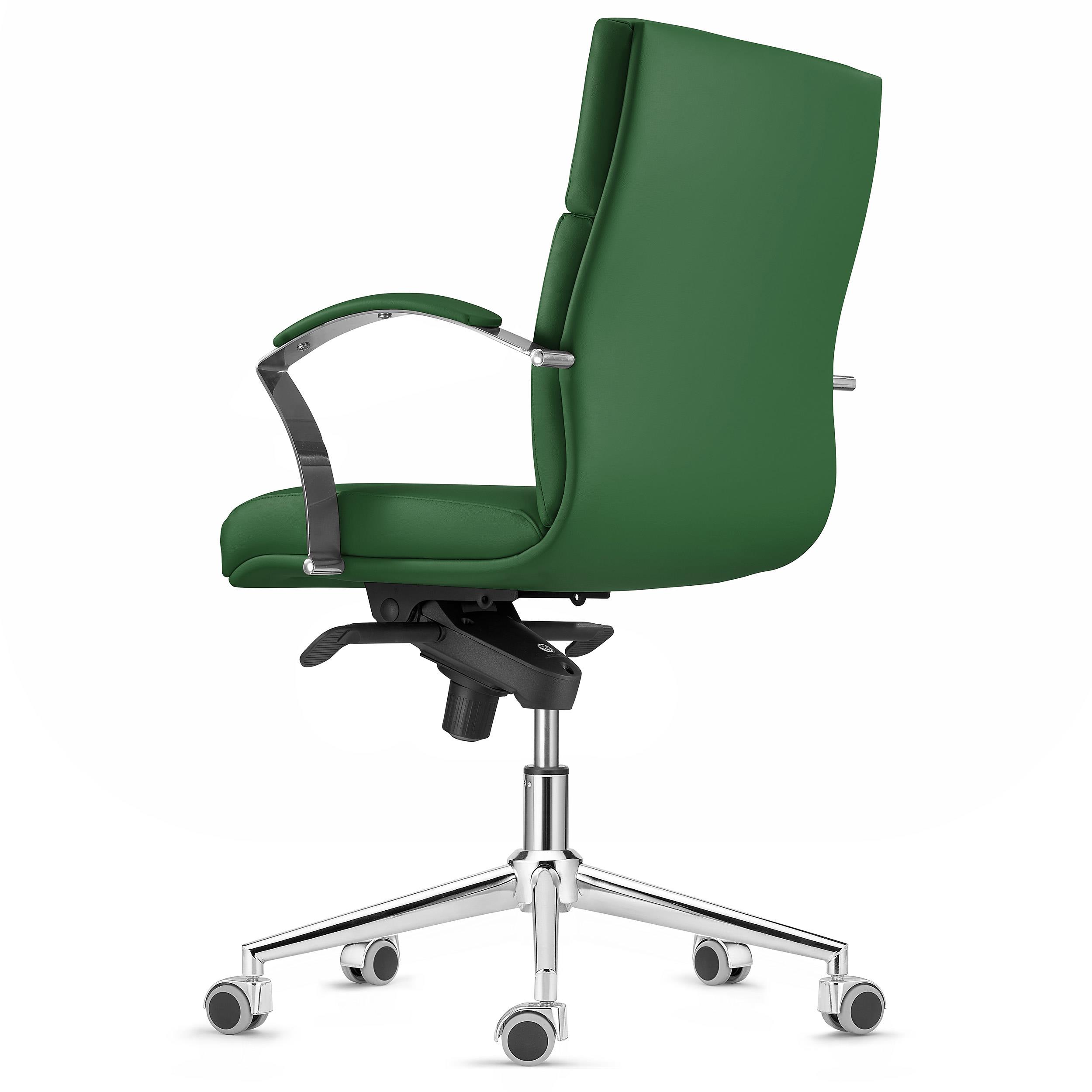 Fotel Biurowy Ergonomiczny RABAT, Średnie Oparcie, Skórzany kolor Zielony, Funkcja Bujania