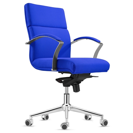 Fotel Biurowy Ergonomiczny RABAT, Średnie Oparcie, Tkanina kolor Niebieski, Funkcja Bujania