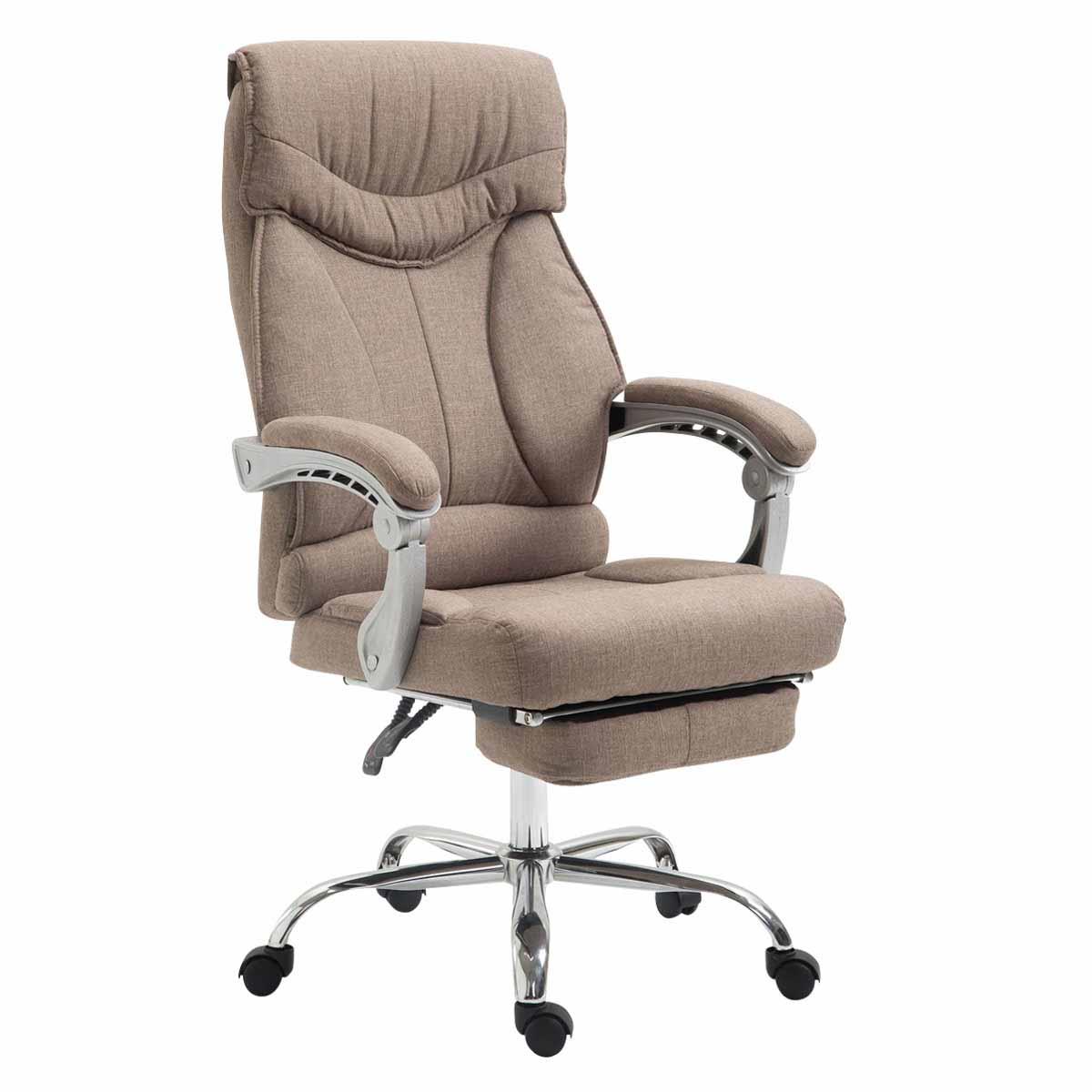 Fotel Biurowy OREGON TKANINA, Wysuwany Podnóżek, Gruba Wyściółka, kolor Jasnobrązowy