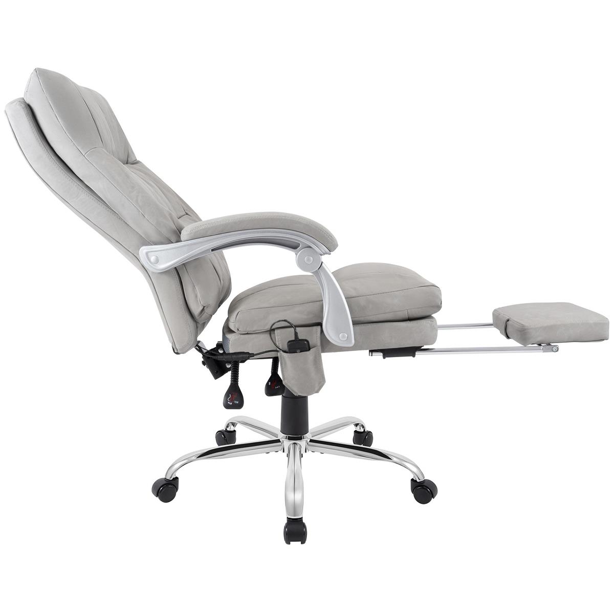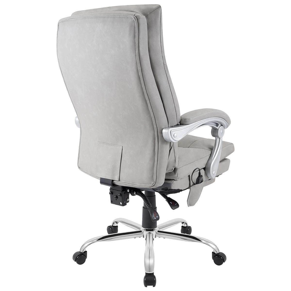 Fotel Biurowy SARMI, Wysuwany Podnóżek, Funkcja Masażu i Podgrzewania, Skóra kolor Szary
