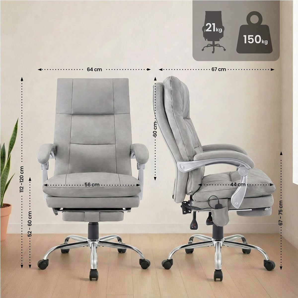 Model ten ma oparcie odchylane do kąta 135 stopni, z blokadą w pozycji do pracy. Po wyjęciu podnóżka i odchyleniu oparcia można uzyskać pozycję całkowitego relaksu podczas nawet krótkiej przerwy.