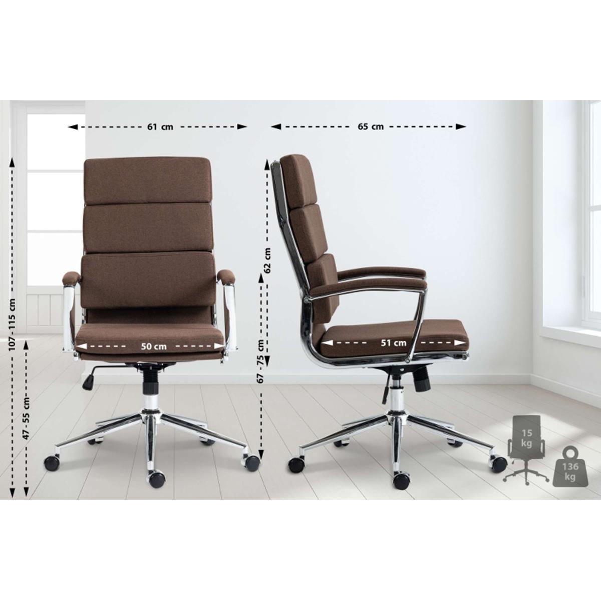 Fotel Biurowy TODRA TKANINA, Metalowa Podstawa, Elegancki i Wygodny, Tkanina kolor Brązowy