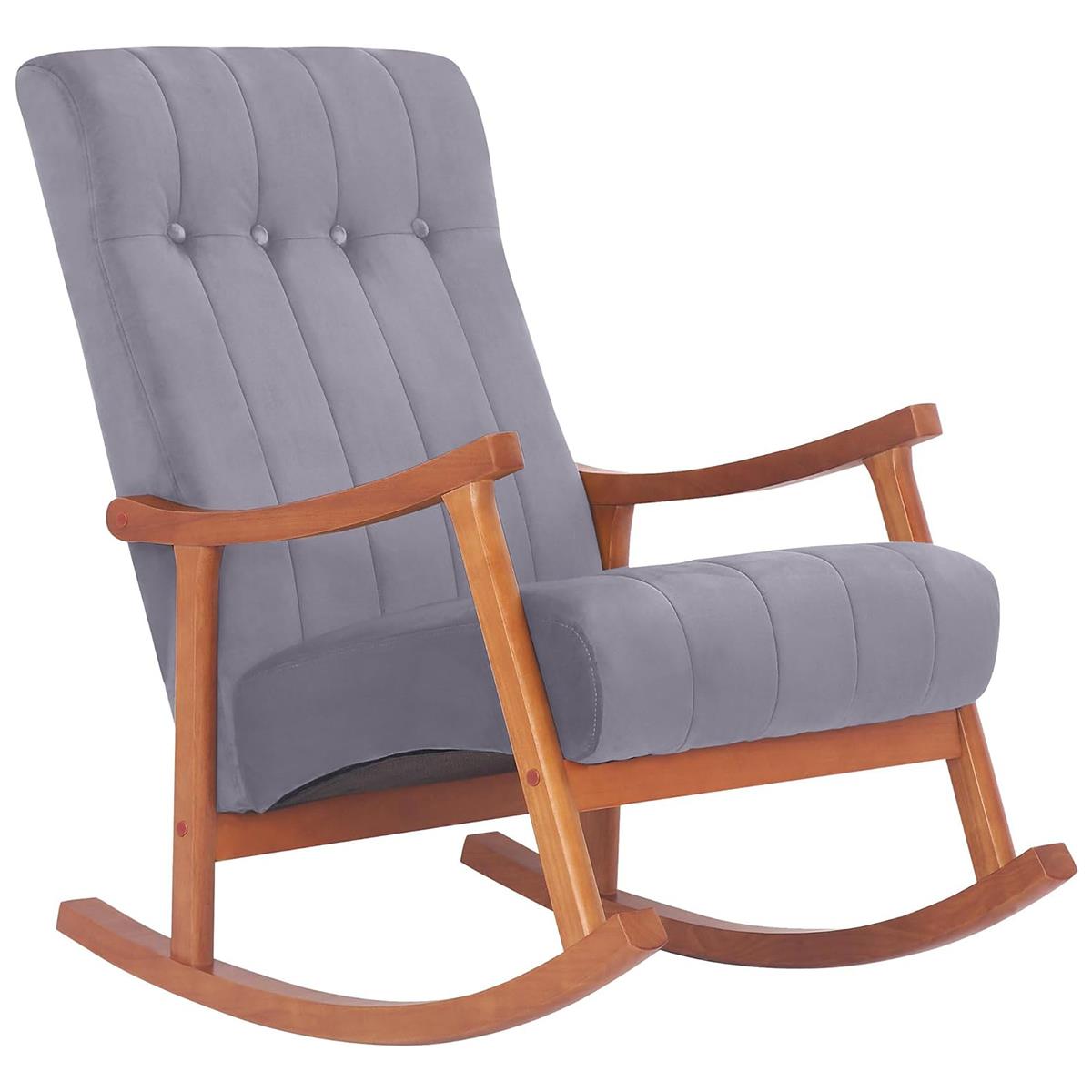 Fotel Bujany SELMA, Wygodny i Wszestronny, Stelaż z Ciemnego Drewna, Tkanina kolor Szary