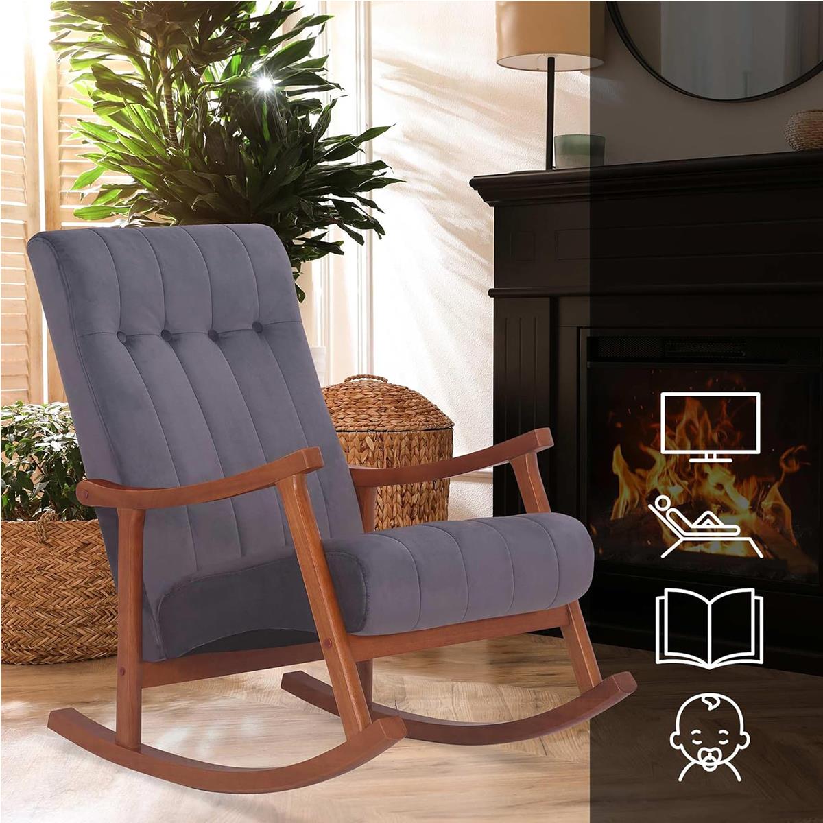 Fotel pokryty jest miękkim aksamitem, bardzo przyjemnym w dotyku. Tkanina ta jest również łatwa w pielęgnacji i czyszczeniu, dzięki czemu produkt nadaje się do codziennego i intensywnego użytkowania. Wyściółka jest wykonana z wysokiej jakości pianki, aby zapewnić wygodne i przyjemne siedzenie.