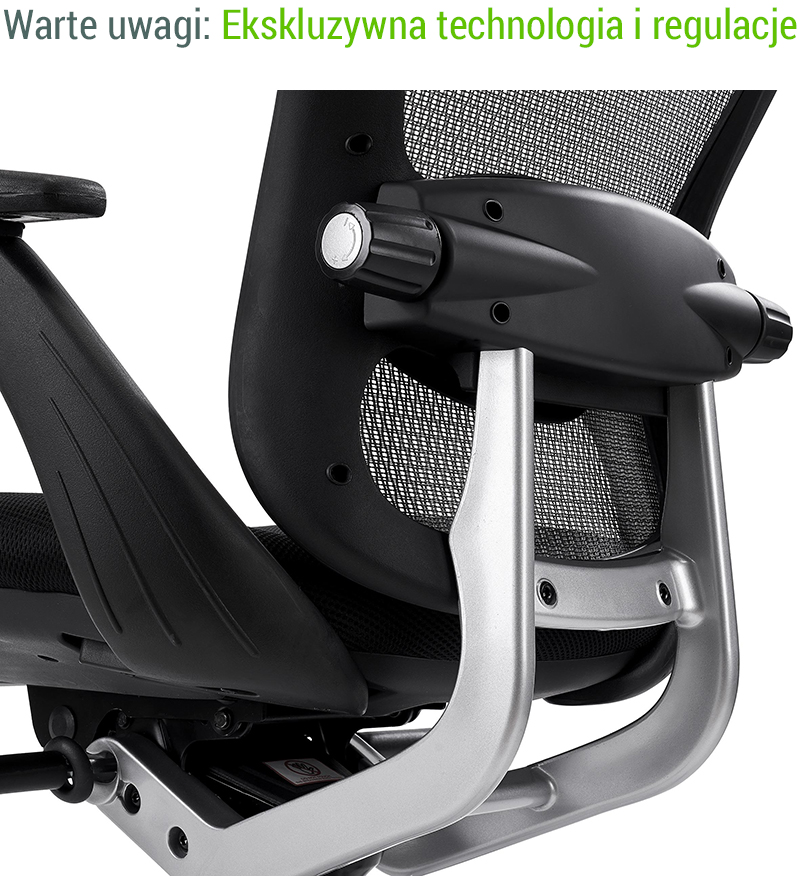 Jego oparcie wykonane z oddychającej siatki ma przemyślany kształt doskonale zbierający plecy. Zostało wyposażone w wyrafinowane regulowane na głębokość podparcie lędźwiowe, dzięki czemu jest polecane nawet osobom po urazach oraz każdemu, kto pragnie absolutnej wygody.