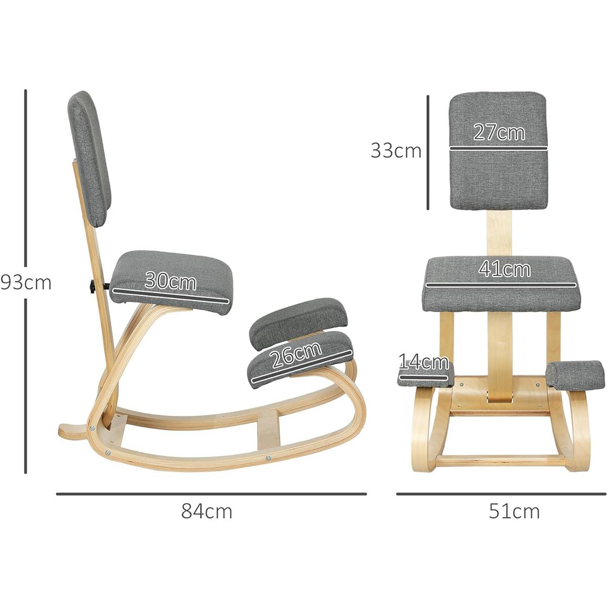 Klęcznik Biurowy MOLTY, Drewniana Konstrukcja z Oparciem, Wyściałane Siedzisko, Tkanina kolor Szary