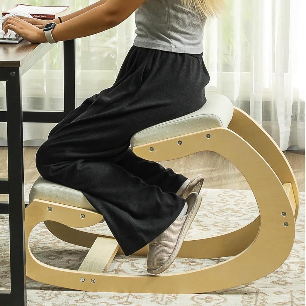 Dzięki konstrukcji klęcznika na płozach mebel umożliwia delikatne kołysanie, dzięki czemu sprzyja koncentracji i wydajności w pracy i nauce, a także wzmacnia mięśnie brzucha i pleców.