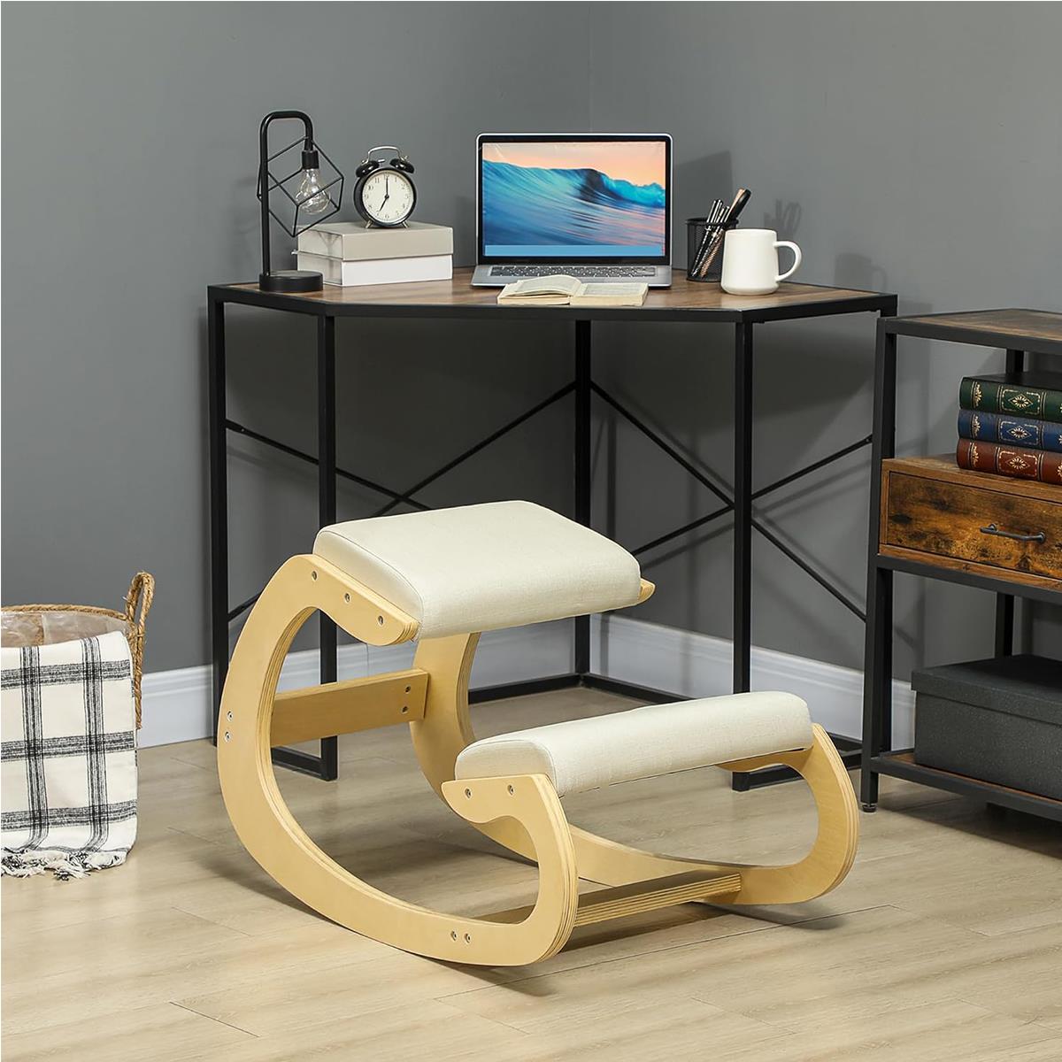 Klęcznik Biurowy YOSI, Drewniana Konstrukcja, Wyściałane Siedzisko, Tkanina kolor Kremowy