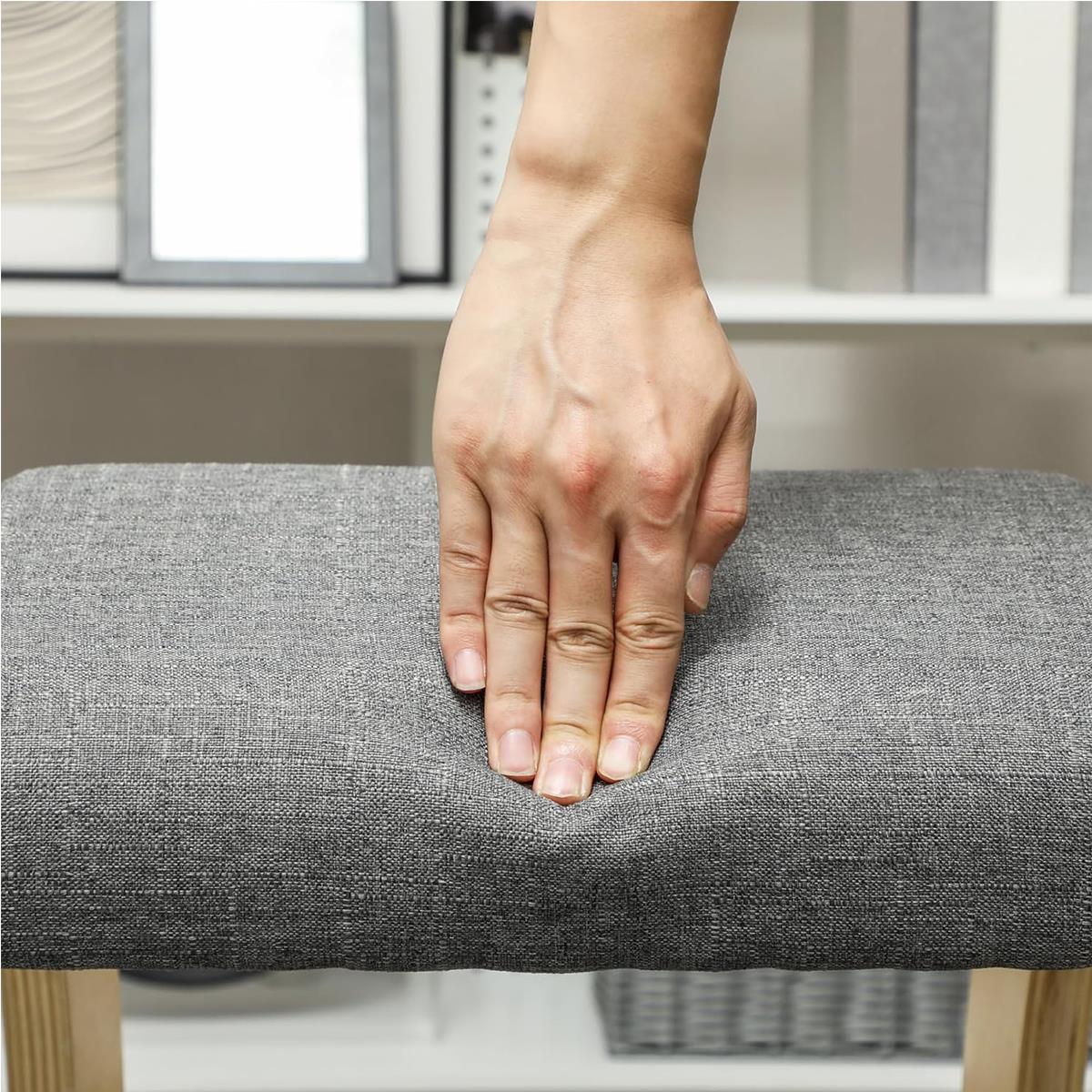 Zarówno siedzisko, jak i poduszka pod kolana są obficie wyściełane, aby zapewnić maksymalny komfort użytkowania. Obicie wykonane jest z wytrzymałej i łatwej w pielęgnacji tkaniny o wyglądzie lnu. Każdy szczegół został zaprojektowany tak, aby zapewnić trwałość produktu.