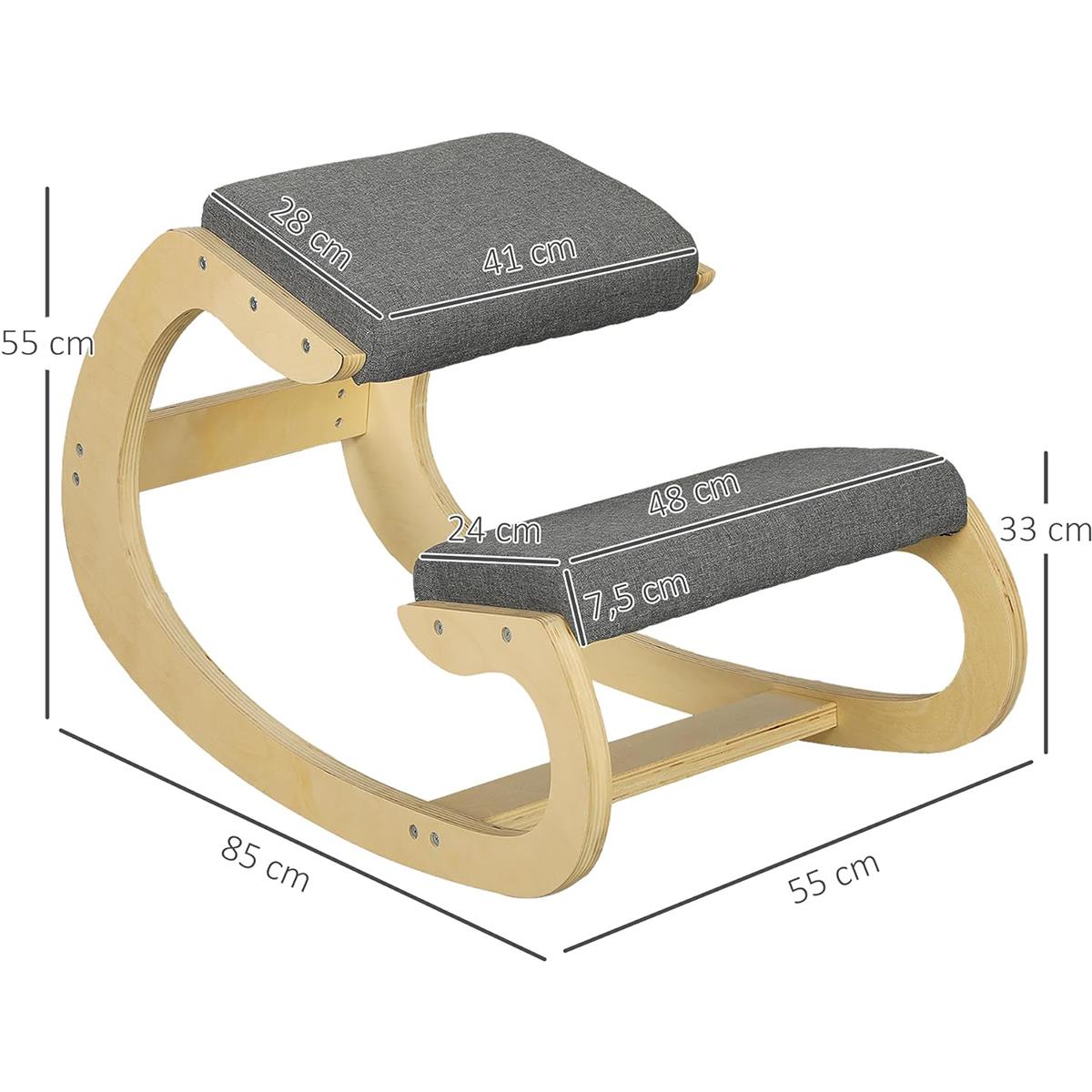 Klęcznik Biurowy YOSI, Drewniana Konstrukcja, Wyściałane Siedzisko, Tkanina kolor Szary
