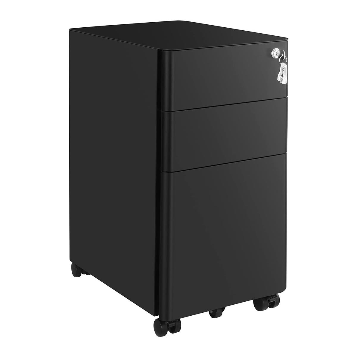 Kontenerek na Kółkach SENDY, 3 Szuflady, Zaokrąglone Ranty, Stal kolor Czarny
