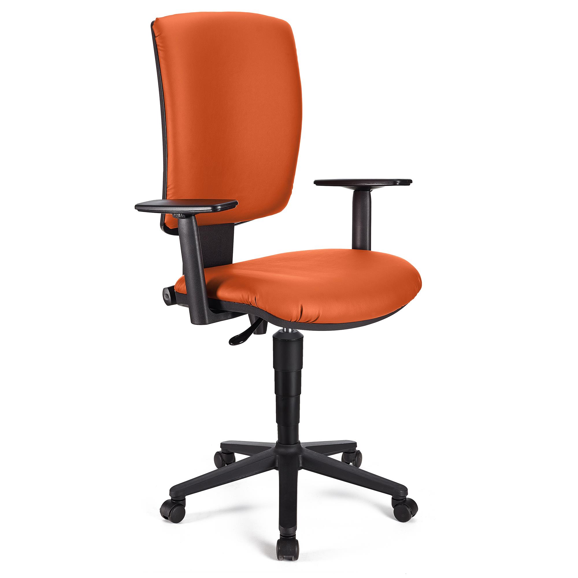 Krzesło Biurowe ATLAS PLUS SKÓRA, Regulowane Oparcie i Podłokietniki, Gruba Tapicerka, Pomarańczowe