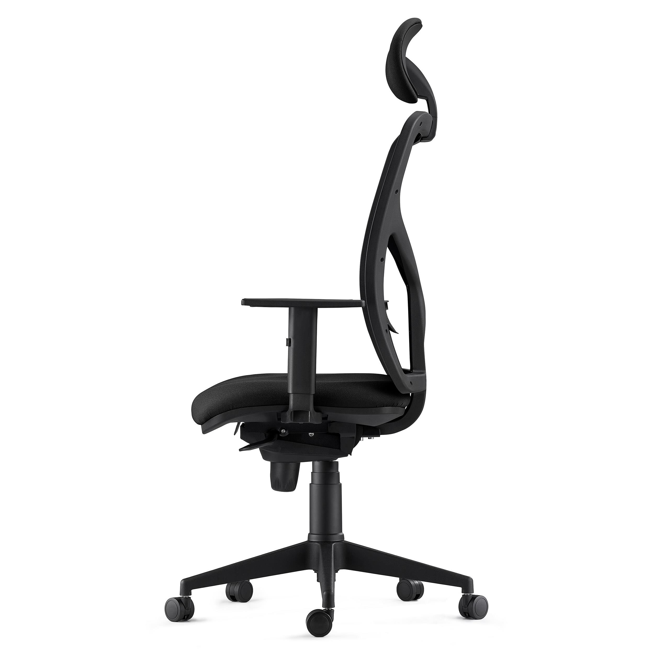 Wygoda jest tym, co definiuje prezentowany model. Komfort został osiągnięty przede wszystkim dzięki ergonomii projektu, która przyczynia się do zachowania optymalnej pozycji ciała podczas pracy na krześle. Dodatkowo grube wypełnienie siedziska oraz oparcie z podparciem lędźwiowym z regulacją wysokości wpływają na jeszcze większą wygodę.