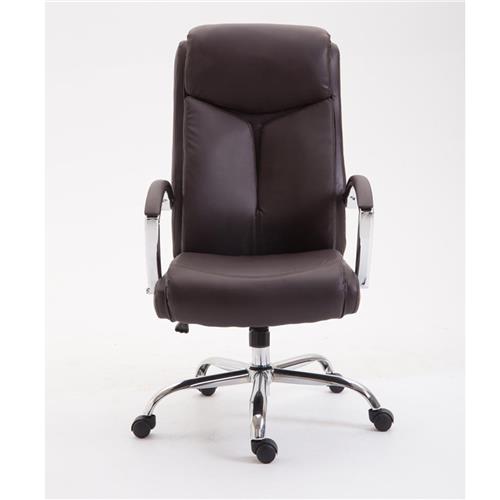 Krzesło Biurowe BAUDY, Miękkie Wypełnienie, Metalowa Podstawa, Skórzana Tapicerka, kolor Brązowy